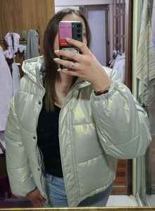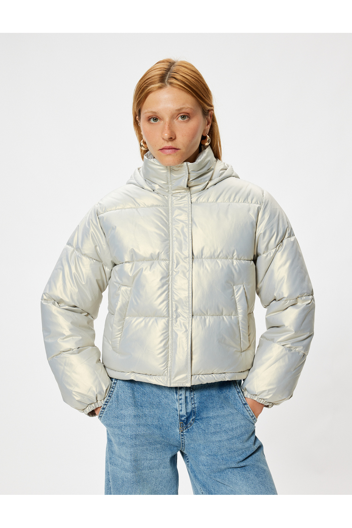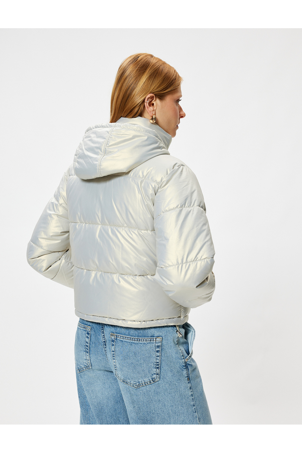 Dik Yaka Fermuarlı Parlak Kapüşonlu Kısa Şişme Mont Dik Yaka Fermuarlı Parlak Kapüşonlu Kısa Şişme Mont 5WAK20178EW 42