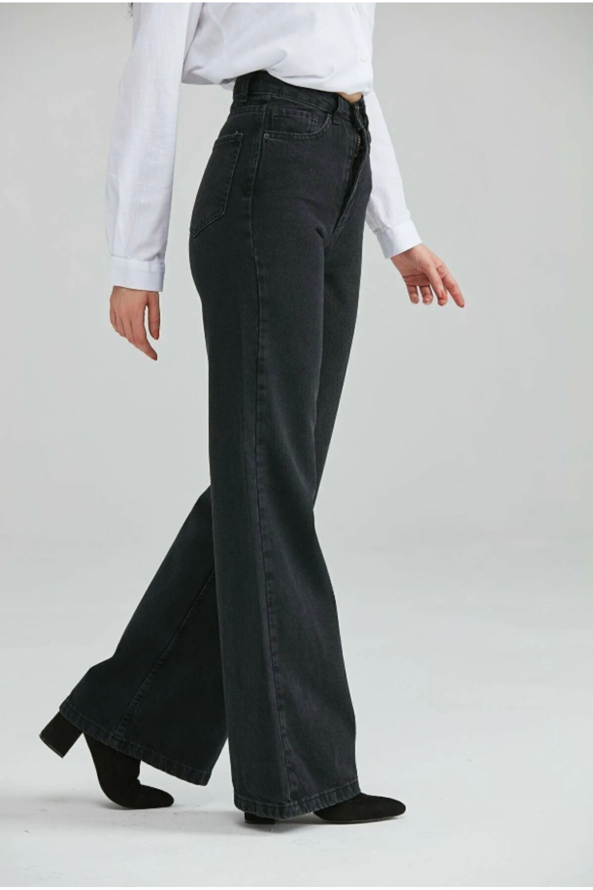 Kadın Bol Paça Elit Kesim Kot Pantolon Kadın Bol Paça Elit Kesim Kot Pantolon 535121522255151512 2XS