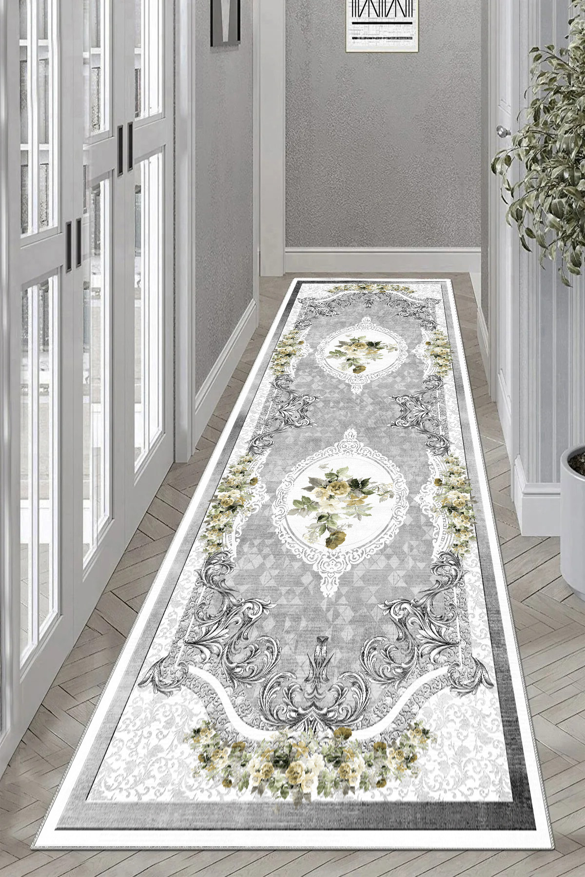 Kaymaz Tabanlı Yıkanabilir Baskılı Yolluk Halı Koridor Halısı Kaymaz Tabanlı Yıkanabilir Baskılı Yolluk Halı Koridor Halısı T-Gulbahar 160 x 230