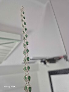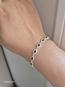 925 Ayar Gümüş Su Yolu Damla Zümrüt Taşlı Bileklik 925 Ayar Gümüş Su Yolu Damla Zümrüt Taşlı Bileklik KLM00019 تک سایز