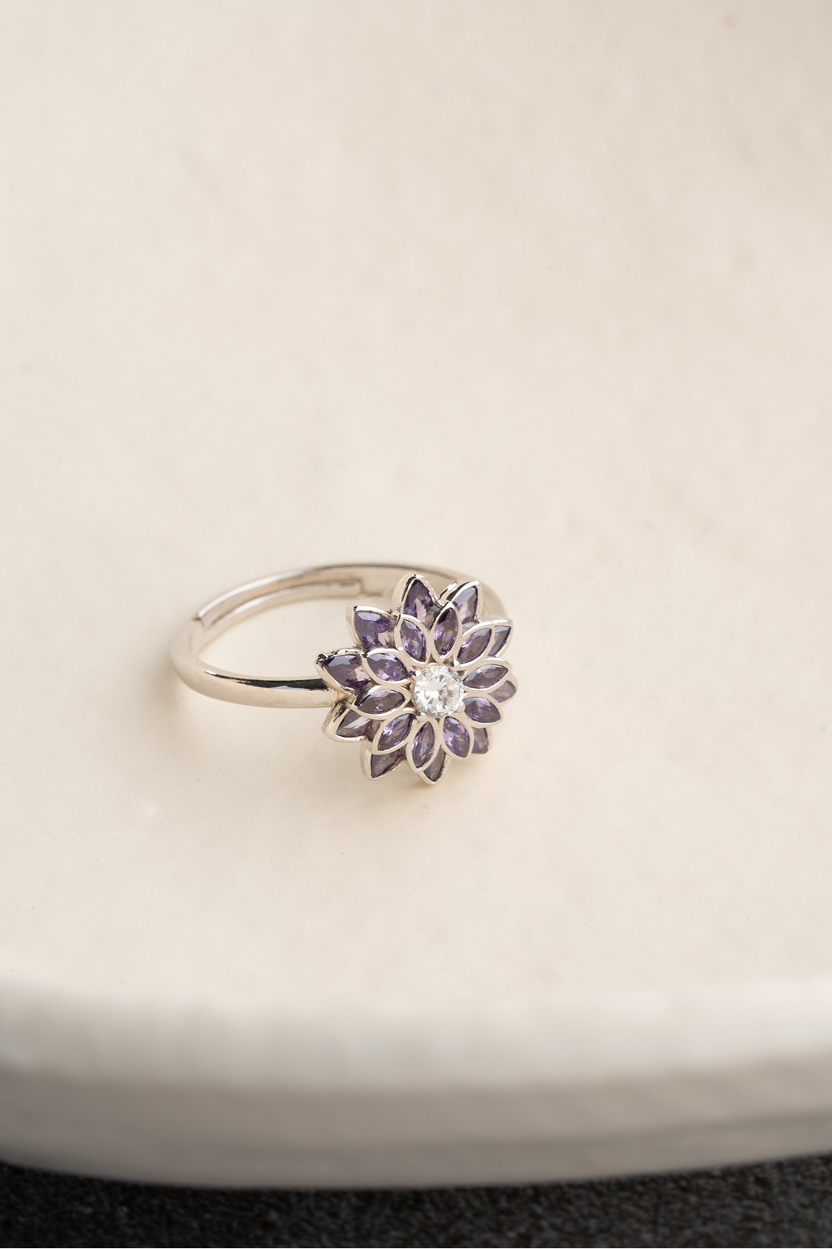 925 Ayar Gümüş Zirkon Mor Taşlı Lotus Yüzük 925 Ayar Gümüş Zirkon Mor Taşlı Lotus Yüzük KLM00026 تک سایز