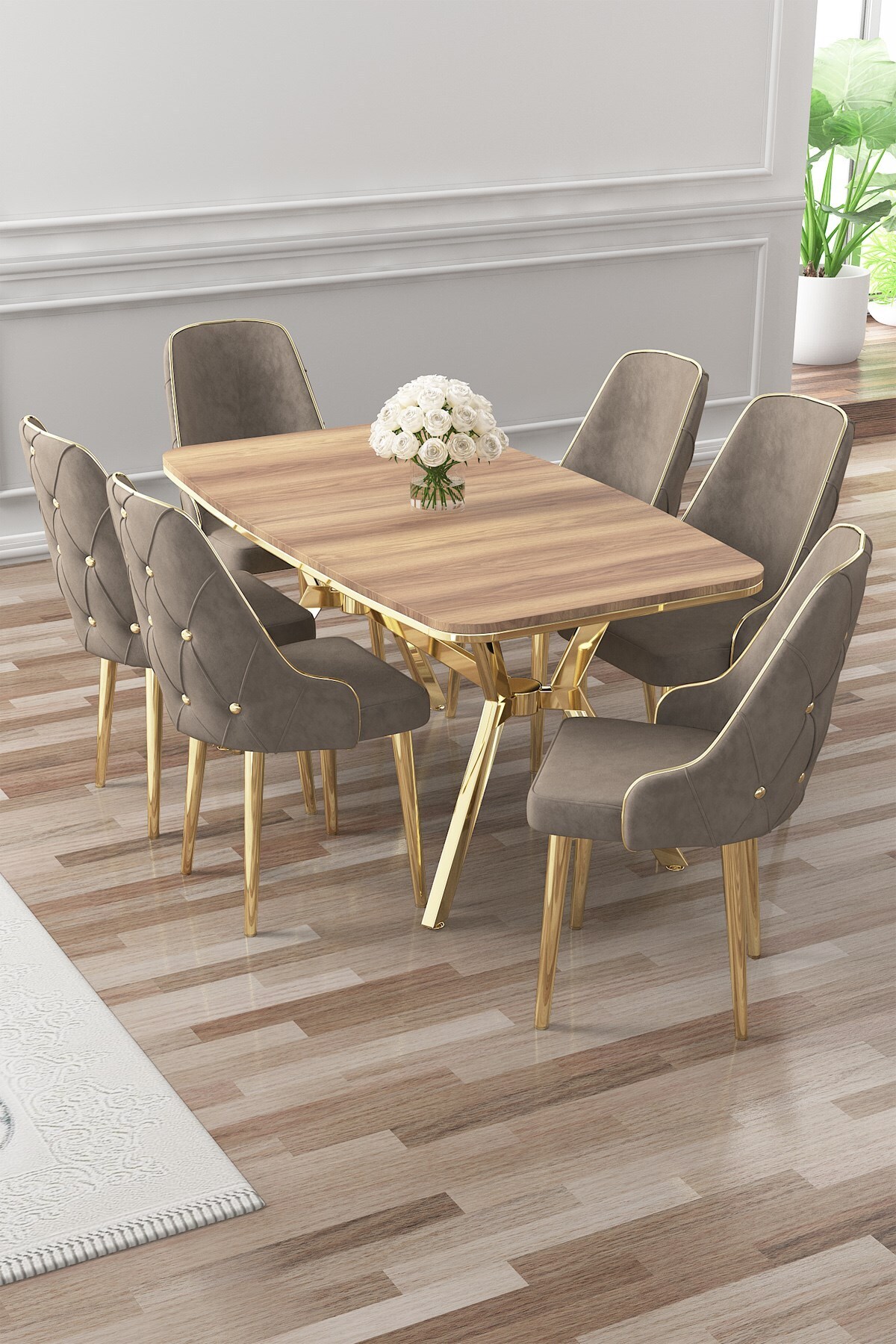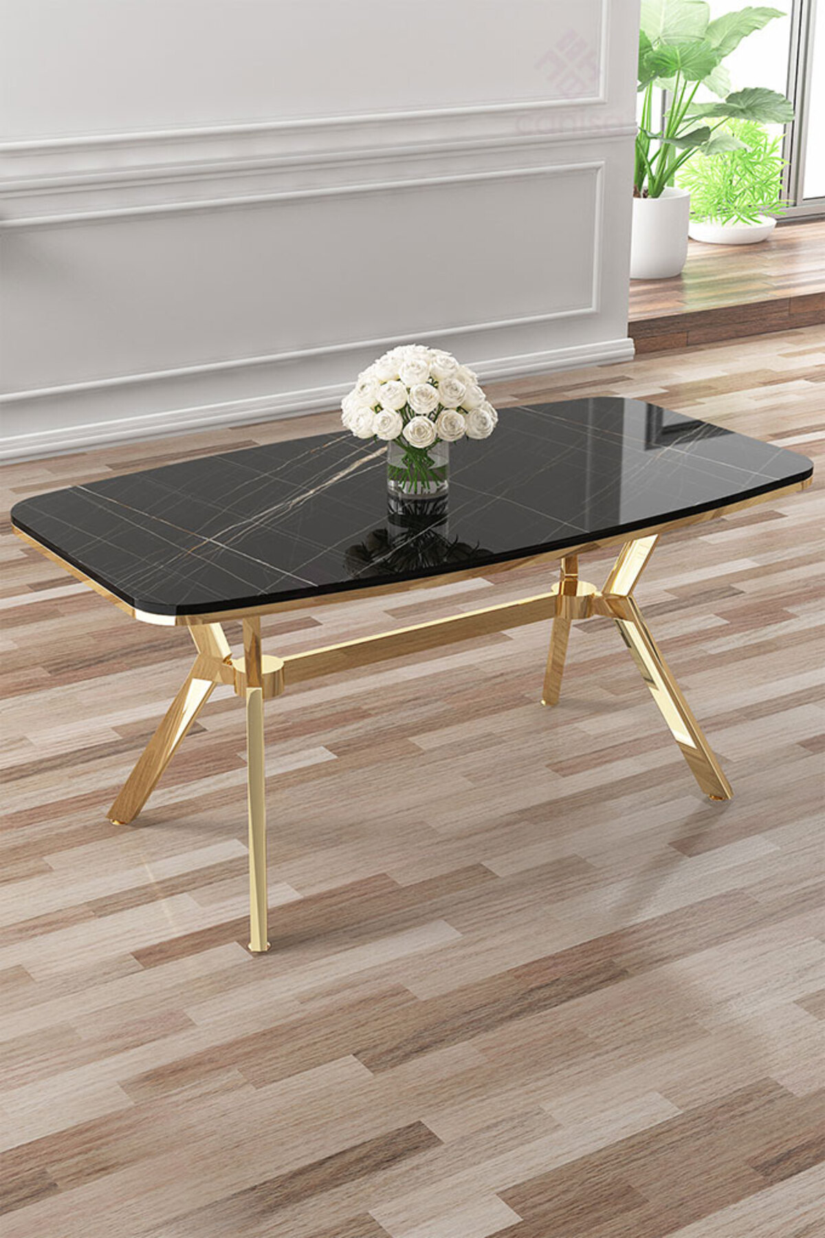 Asel Serisi 90x160 Lak Panel Siyah Mermer Desen Gold Detay Masa Takımı ve 6 Cappucino Sandalye Asel Serisi 90x160 Lak Panel Siyah Mermer Desen Gold Detay Masa Takımı ve 6 Cappucino Sandalye 22ASELSMRR06GLD06 تک سایز