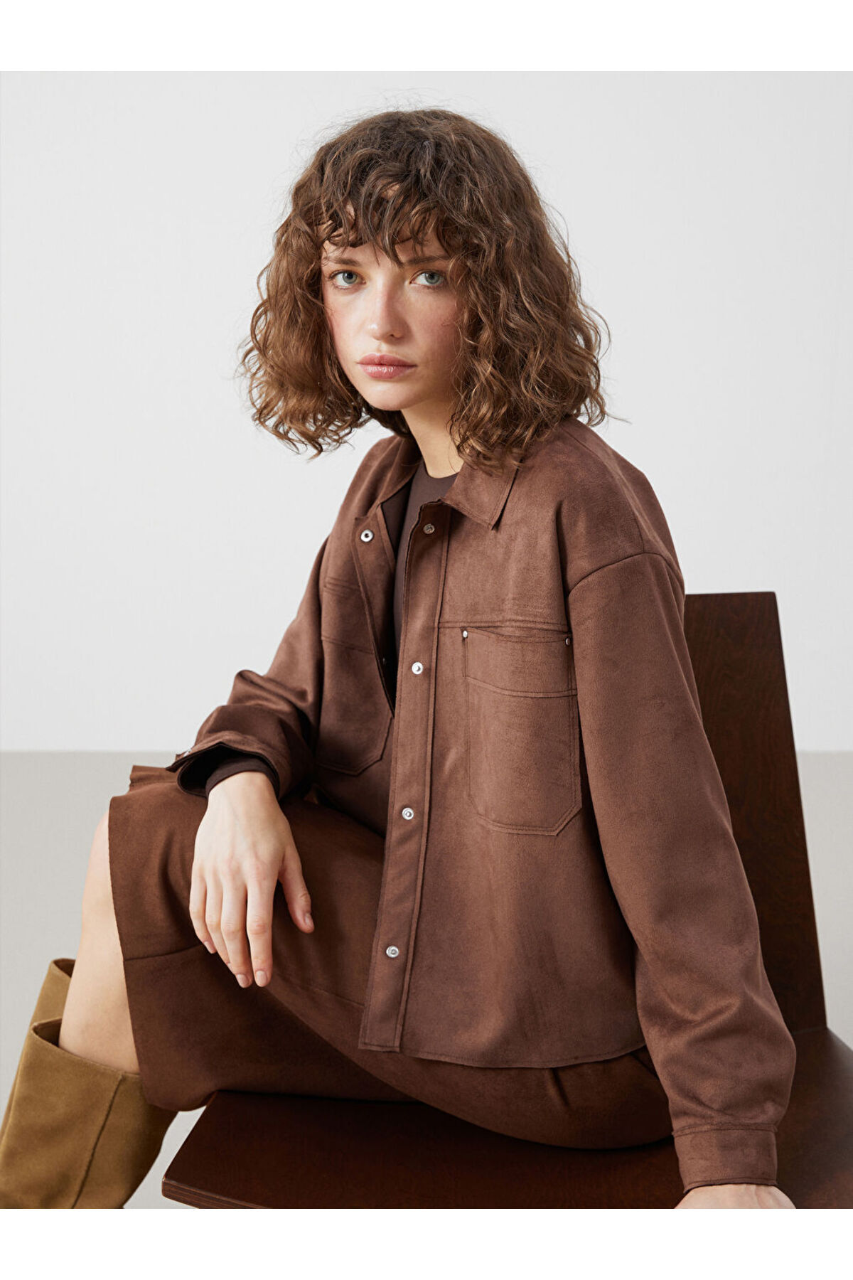 Lcw Modest Kahverengi Gömlek Yaka Kadın Süet Görünümlü Ceket Lcw Modest Kahverengi Gömlek Yaka Kadın Süet Görünümlü Ceket W4L728Z8 44