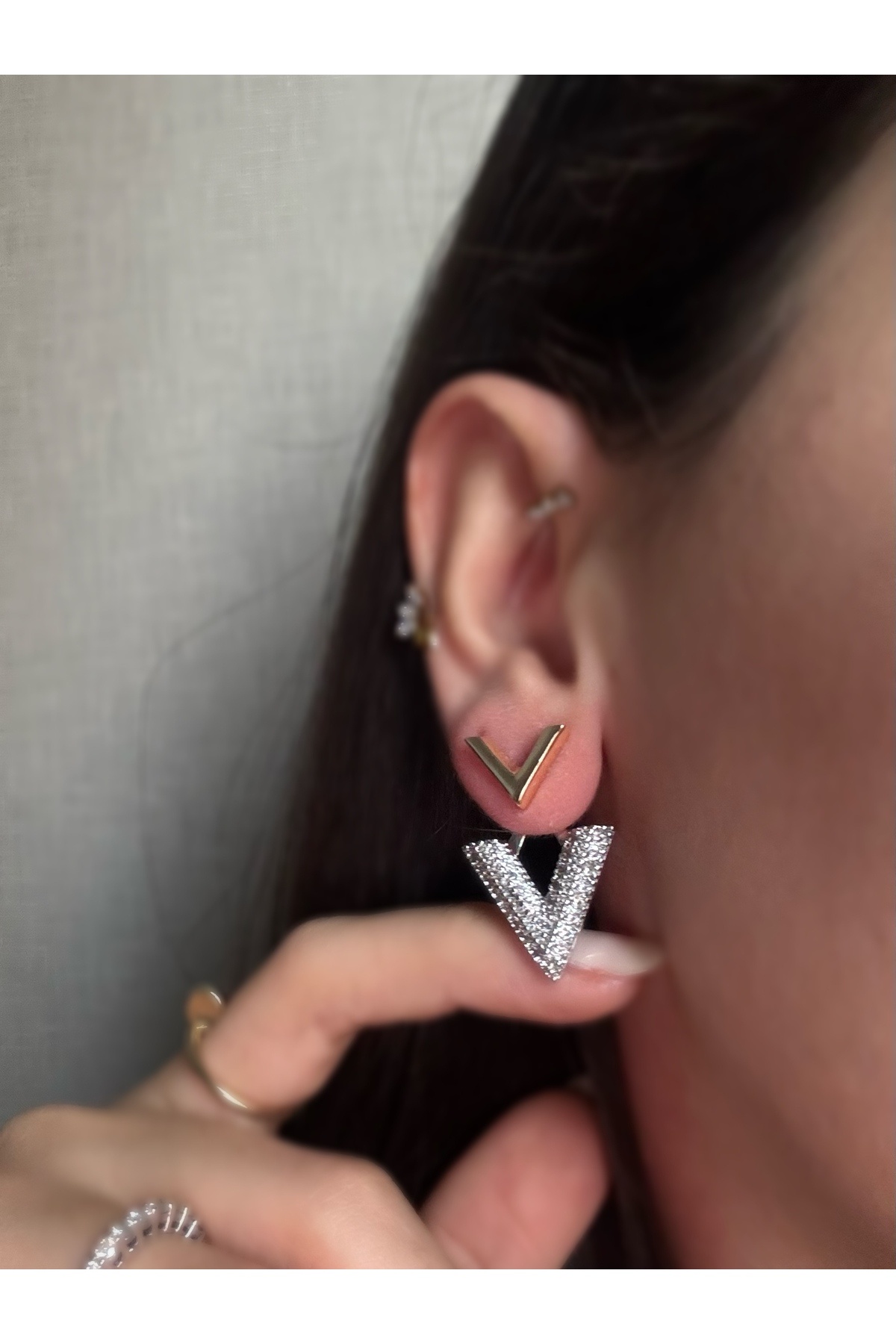 Kadın Taşlı V Küpe Trend Model Kadın Taşlı V Küpe Trend Model MioartVKüp تک سایز