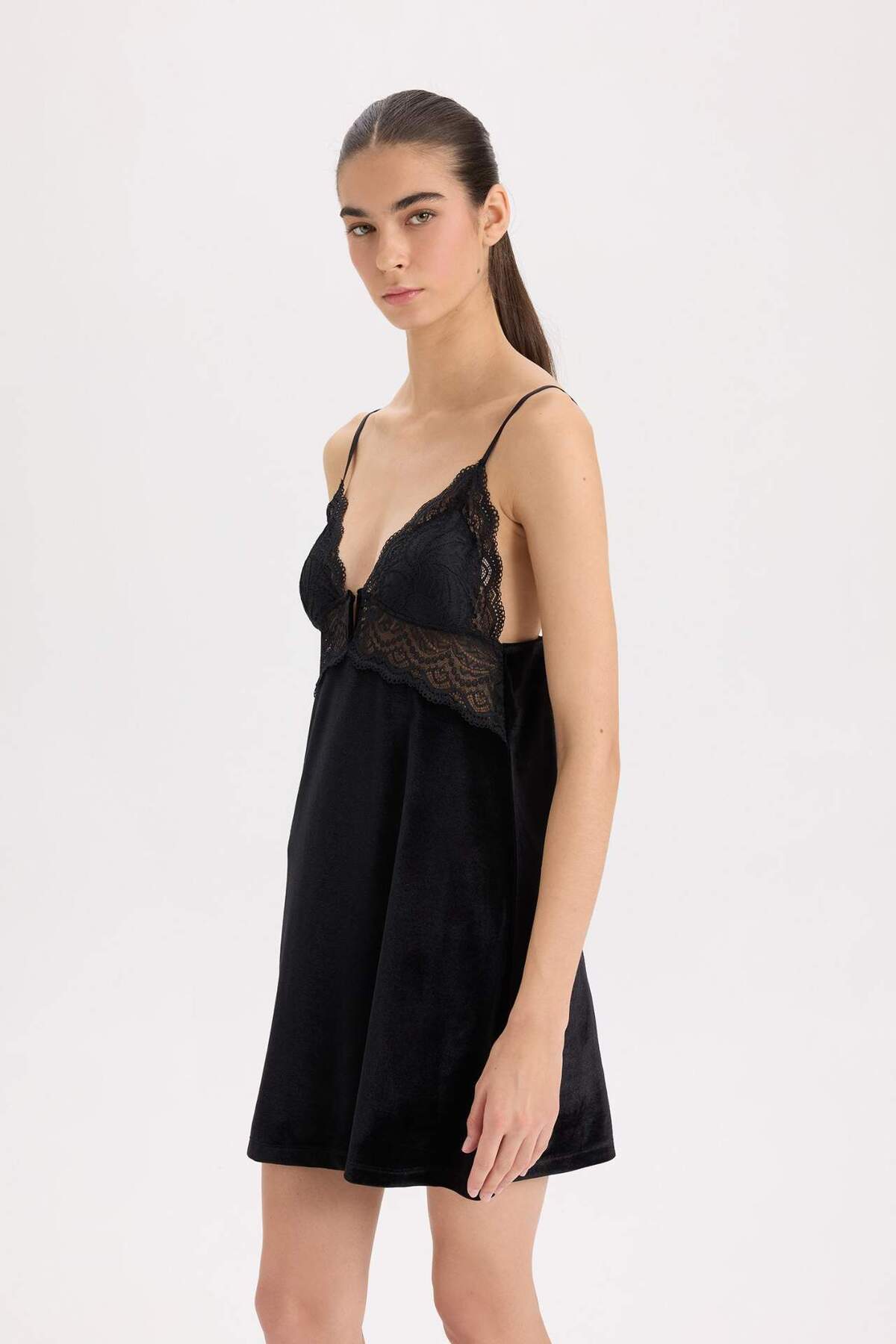 Fall in Love V Yaka Dantelli Kadife Askılı Gecelik D6446AX24WN Fall in Love V Yaka Dantelli Kadife Askılı Gecelik D6446AX24WN XL