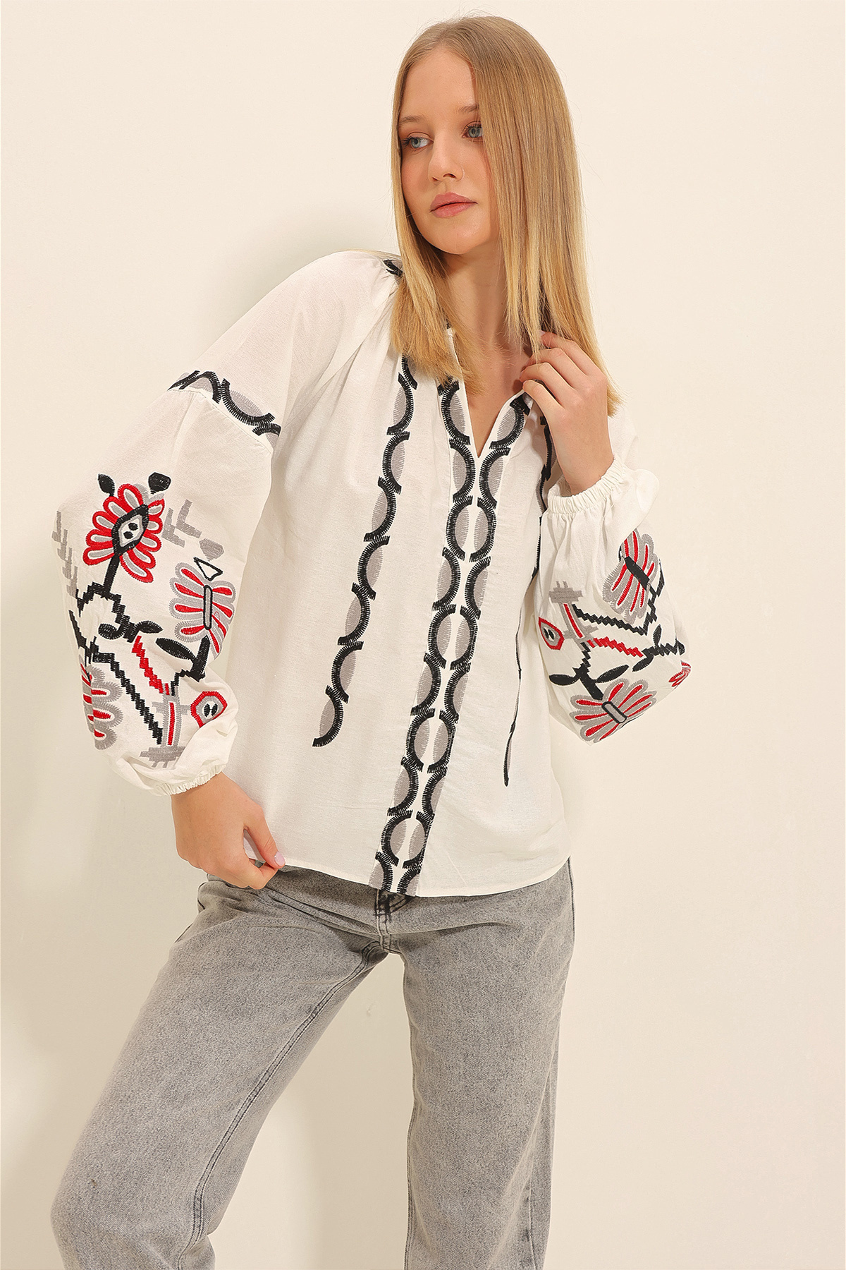Regular Fit Fırfırlı V Yaka Basic Düz Uzun Kollu Bluz E3393AX24WN Regular Fit Fırfırlı V Yaka Basic Düz Uzun Kollu Bluz E3393AX24WN 2XL