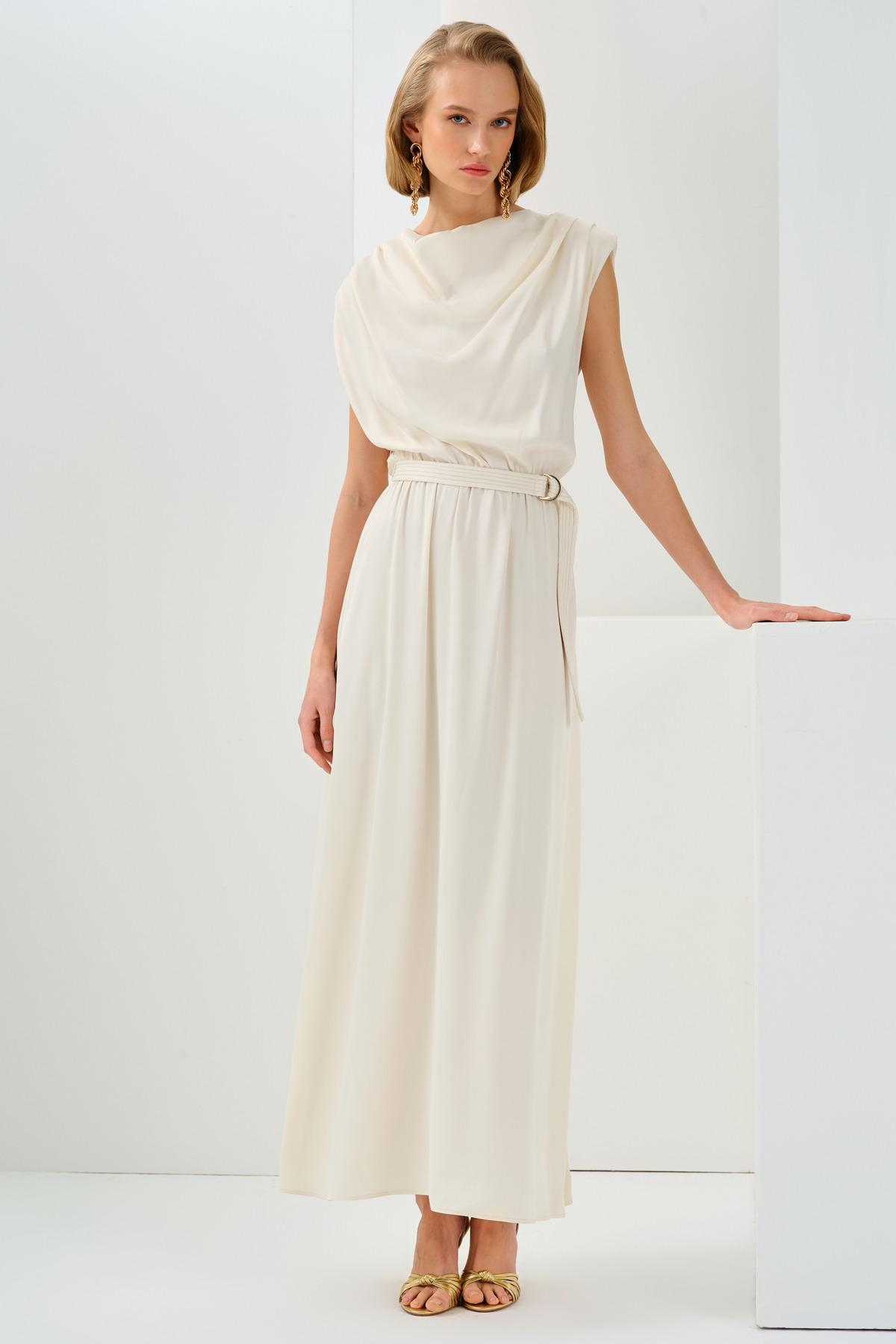 Degaje Yaka Saten Maxi Elbise Degaje Yaka Saten Maxi Elbise 112YD41Y1653 46
