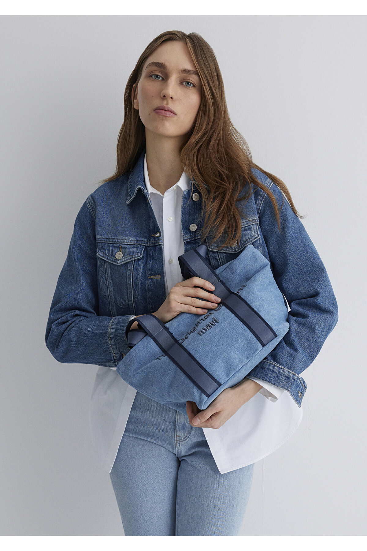 Icone Denim Yıkamalı Tote Antrasit El ve Omuz Çantası, Kot Çanta Icone Denim Yıkamalı Tote Antrasit El ve Omuz Çantası, Kot Çanta ICN0307 تک سایز