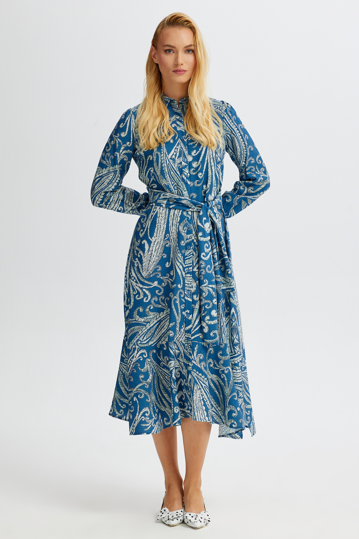 Yırtmaç Detaylı Uzun Gömlek Elbise Yırtmaç Detaylı Uzun Gömlek Elbise 112YD41K1565 46