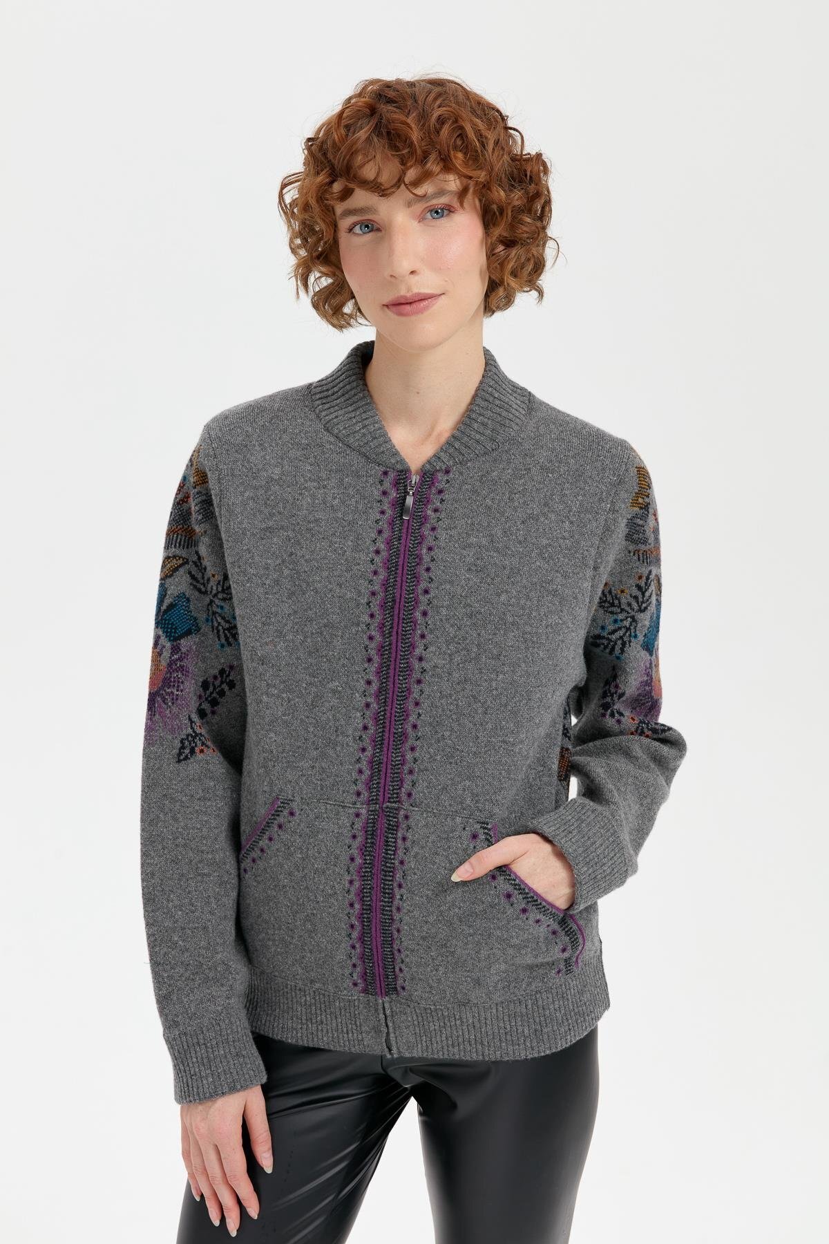 Kadın Sıfır Yaka Eteği ve Kol Ucu Desenli Yün Ceket 24085 Füme Kadın Sıfır Yaka Eteği ve Kol Ucu Desenli Yün Ceket 24085 Füme 8024202524085 XL