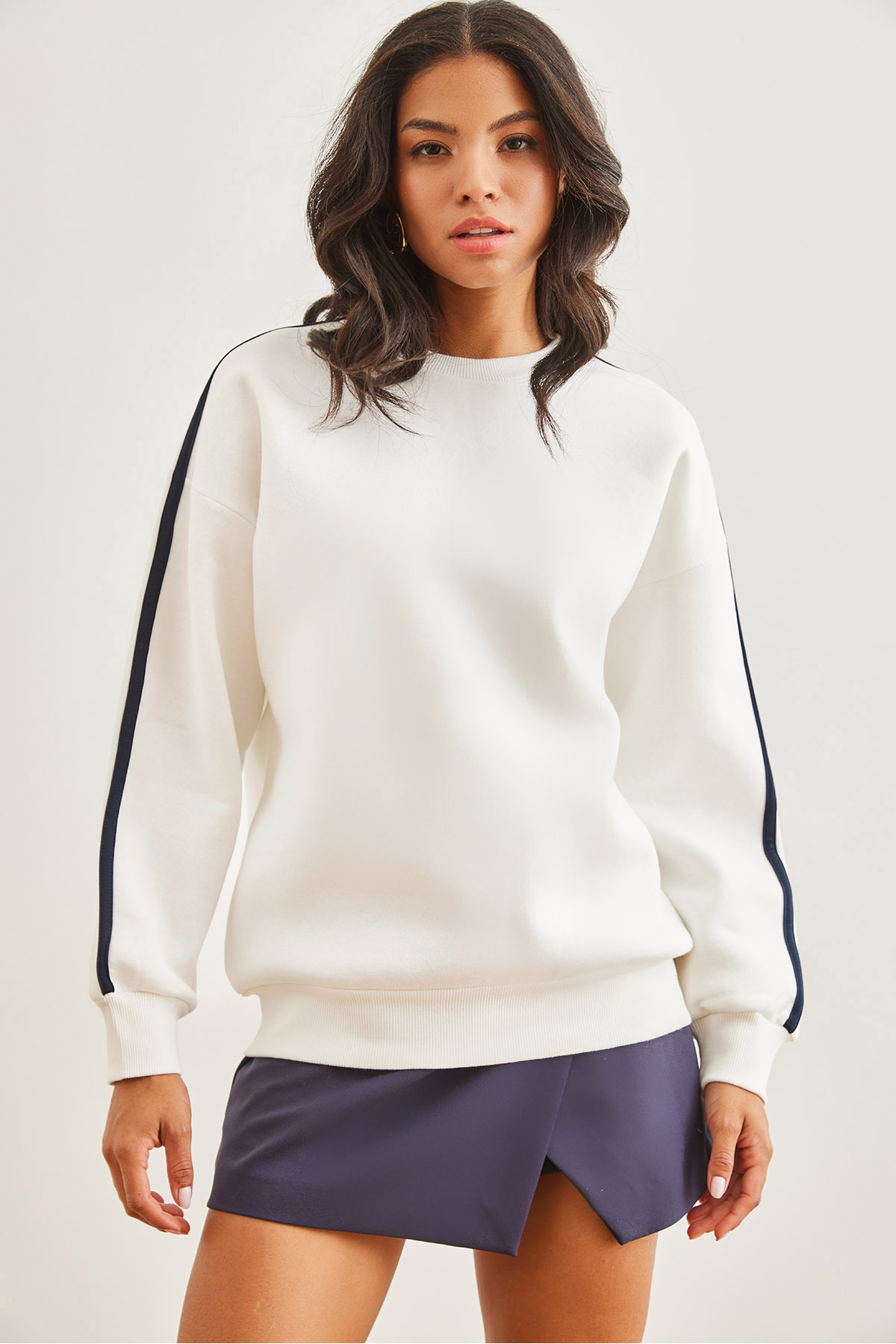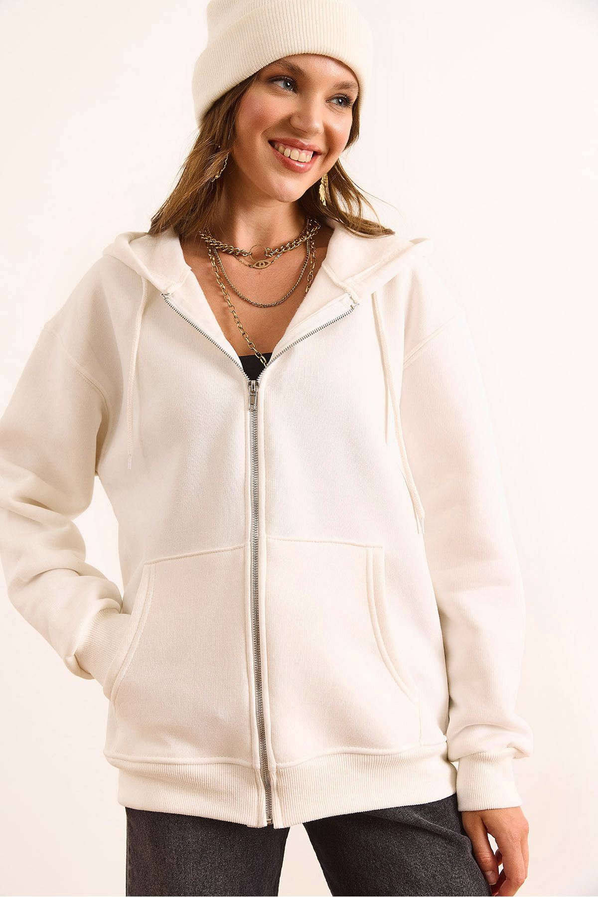 Kadın Beyaz Kapüşonlu Bağcıklı Waffle Sweatshirt SWT-19000708 Kadın Beyaz Kapüşonlu Bağcıklı Waffle Sweatshirt SWT-19000708 M/L