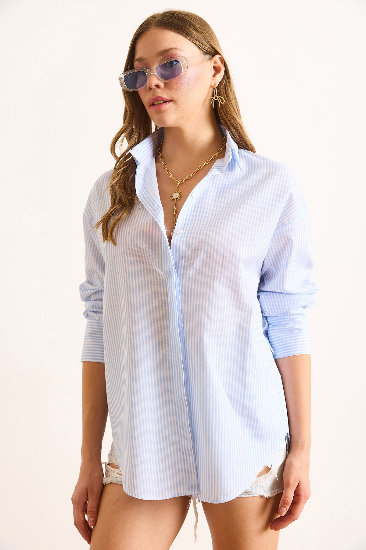 Kadın Çizgili Kırmızı Gizli Patlı Poplin Gömlek GML-19000867 Kadın Çizgili Kırmızı Gizli Patlı Poplin Gömlek GML-19000867 L