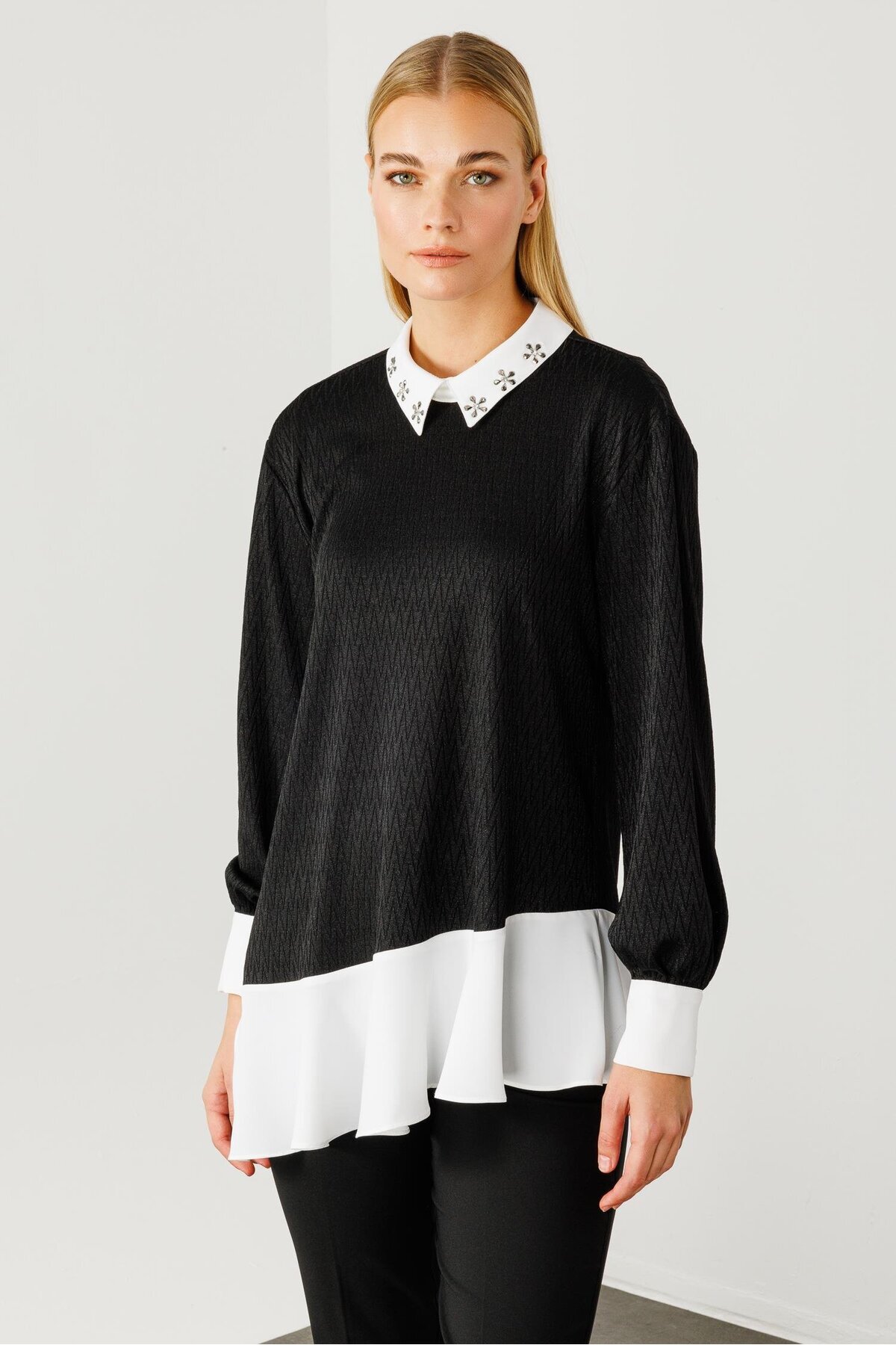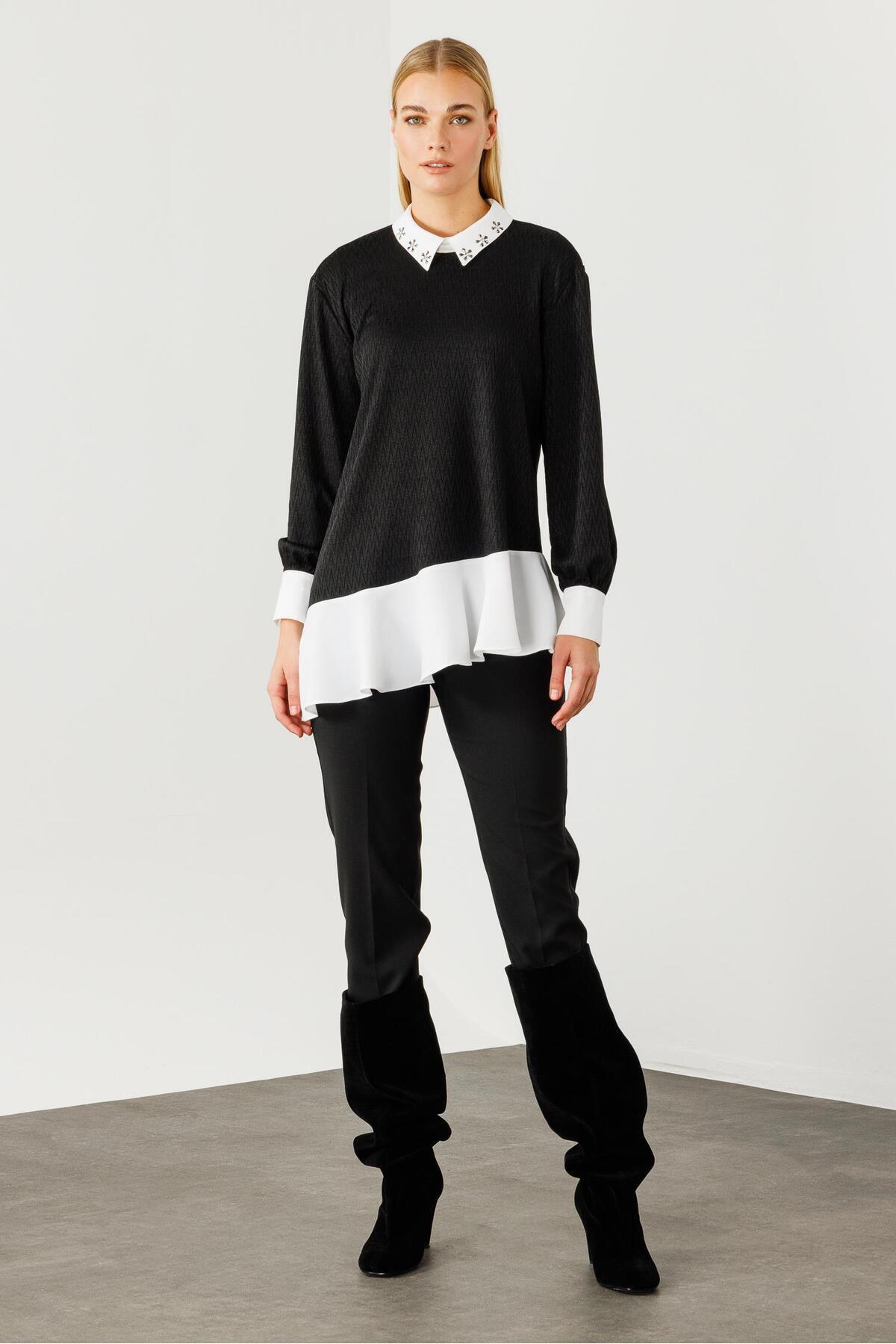 Modailgi Etek Ucu Volanlı Erkek Yaka Tunik Siyah Modailgi Etek Ucu Volanlı Erkek Yaka Tunik Siyah ILG250TNK01536 4
