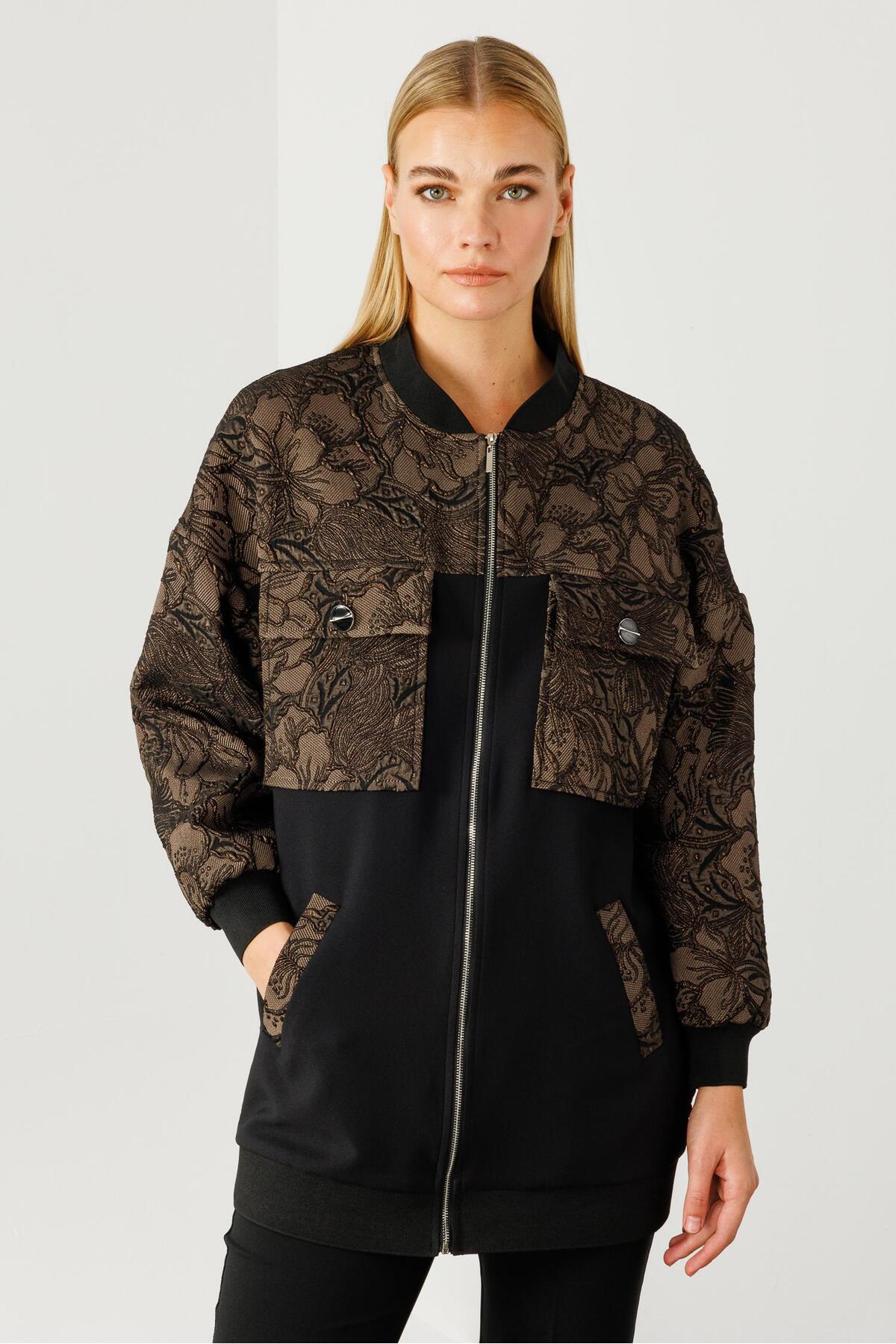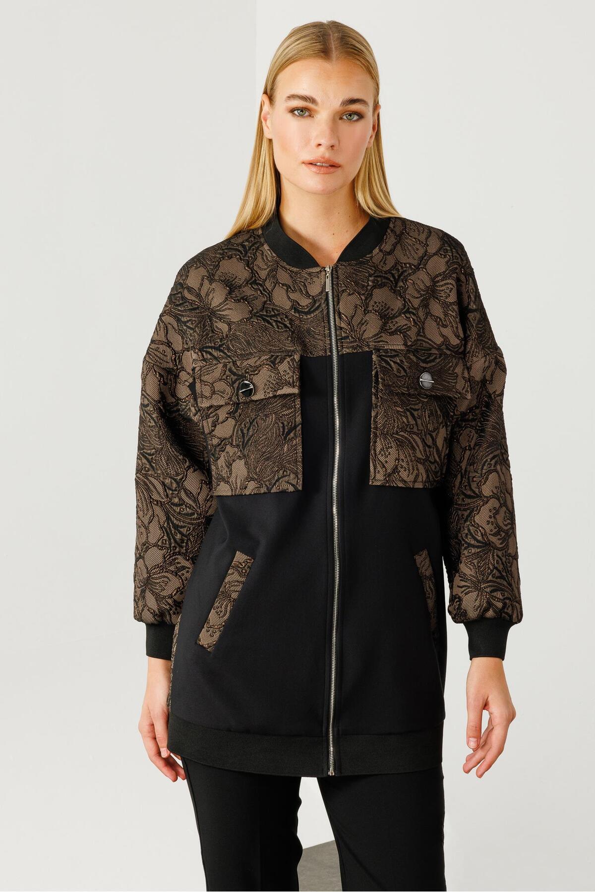 Modailgi Ribanalı ve Düz Kumaş Garnili Fermuarlı Sıfır Yaka Jakar Mont Kahve Modailgi Ribanalı ve Düz Kumaş Garnili Fermuarlı Sıfır Yaka Jakar Mont Kahve ILG250MNT07981 42
