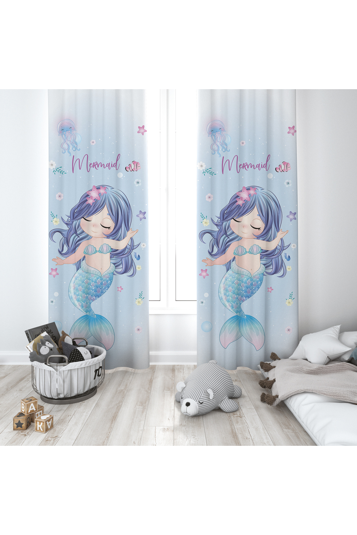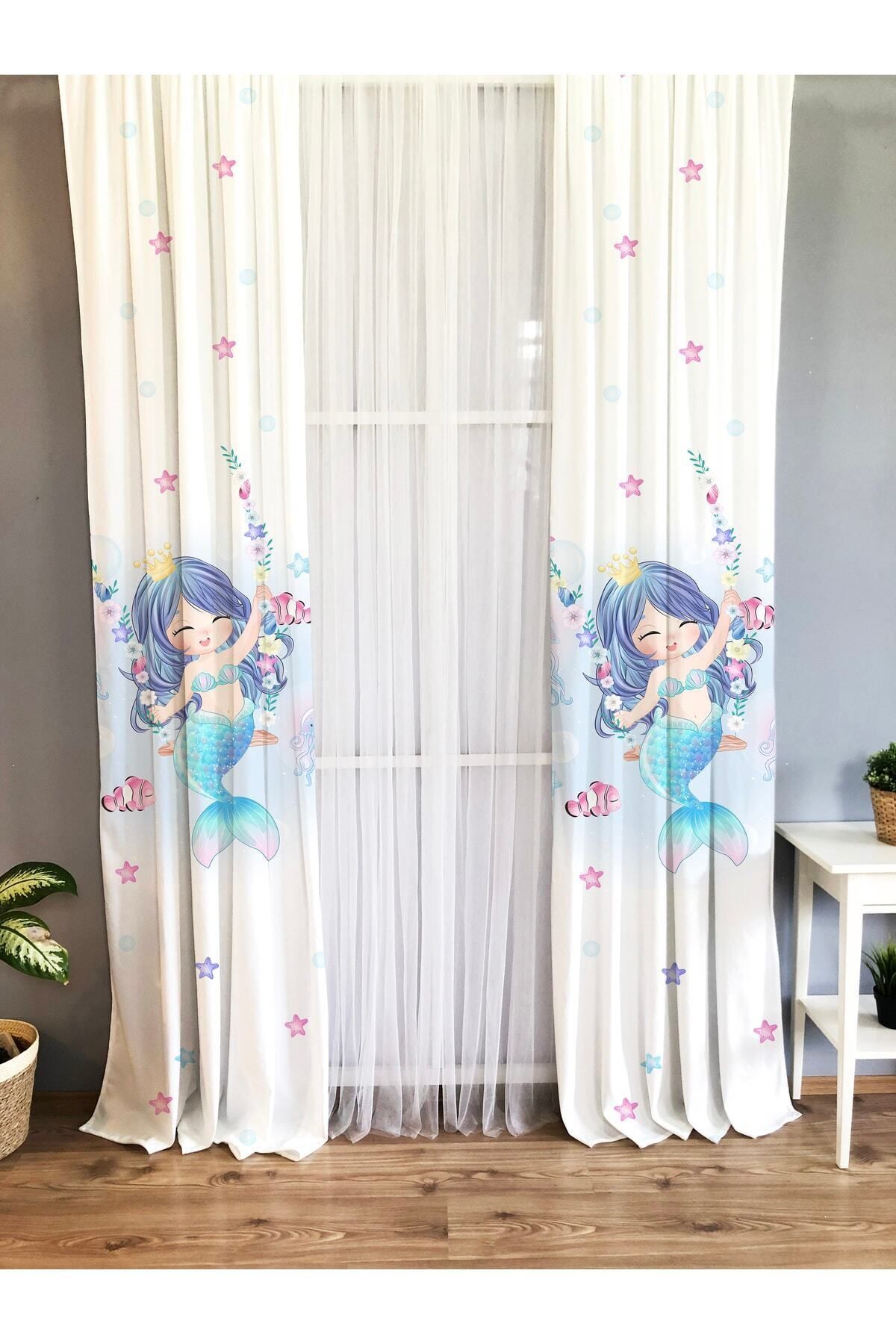 BEBEK VE ÇOCUK ODASI Deniz Kızı Desenli 2 Kanat Fon Perde YBP-8337 BEBEK VE ÇOCUK ODASI Deniz Kızı Desenli 2 Kanat Fon Perde YBP-8337 140 x 270