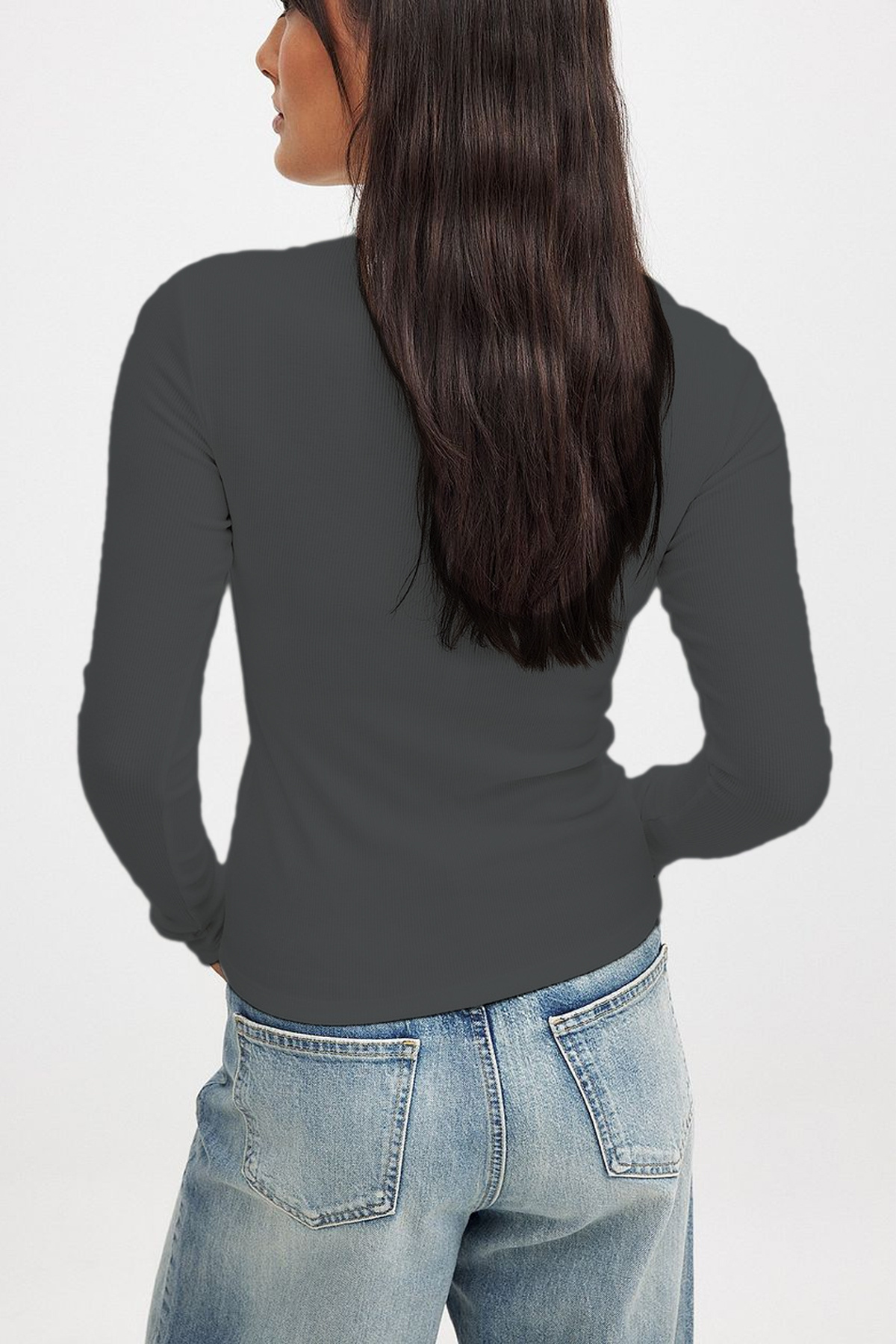 Kadın Antrasit Uzun Kollu Bisiklet Yaka T-shirt Bluz Kaşkorse Fitilli Kadın Antrasit Uzun Kollu Bisiklet Yaka T-shirt Bluz Kaşkorse Fitilli GL SW CLN L