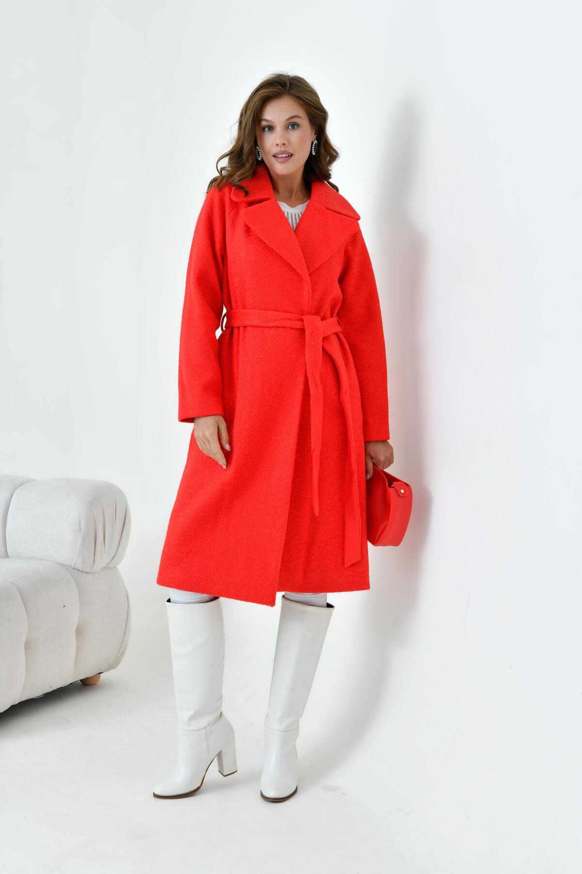 Ftz Women Kadın Geniş Yaka Kaban Kırmızı Ftz Women Kadın Geniş Yaka Kaban Kırmızı 30627 44