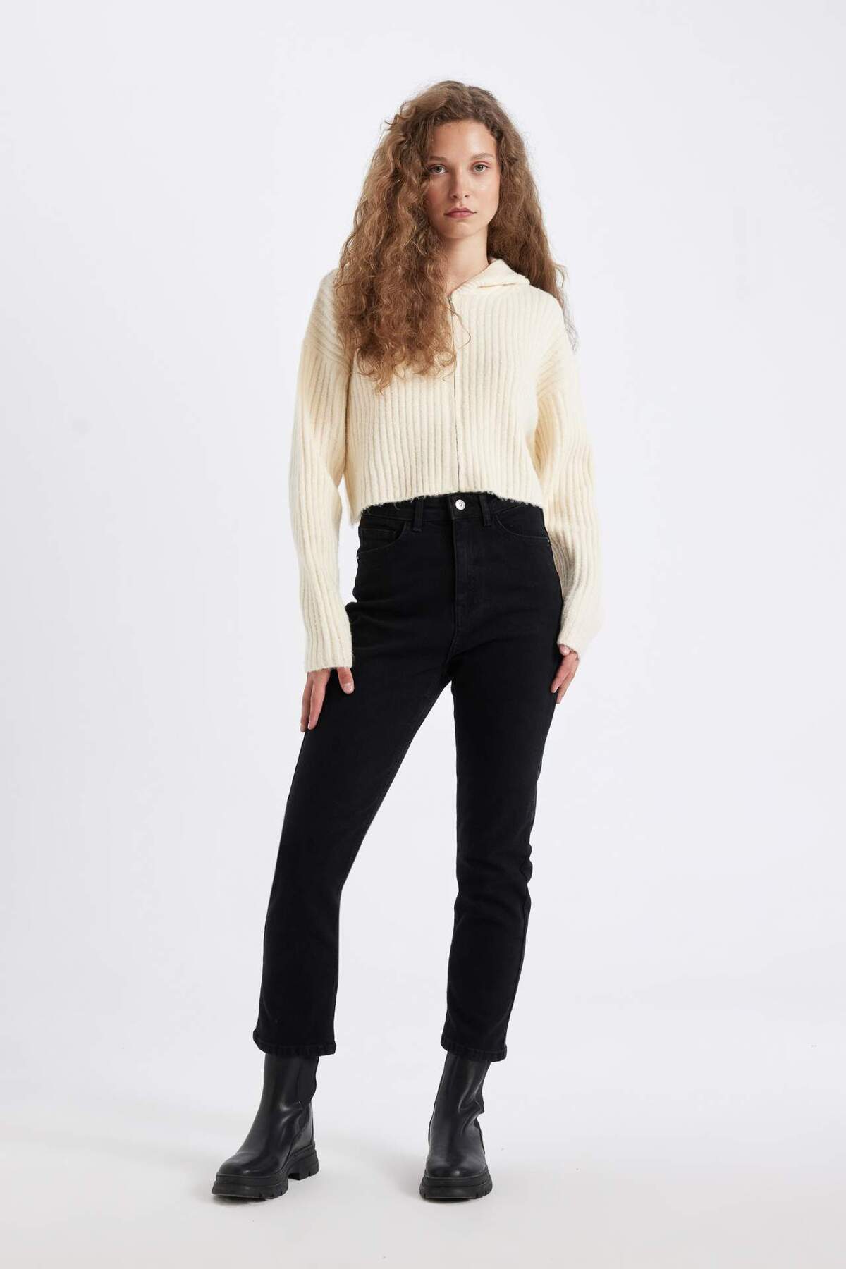 Regular Fit Kapüşonlu Fermuarlı Triko Hırka C7335AX24WN Regular Fit Kapüşonlu Fermuarlı Triko Hırka C7335AX24WN XL