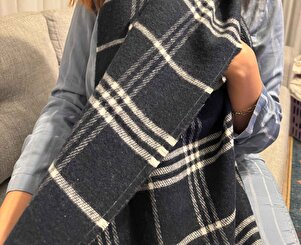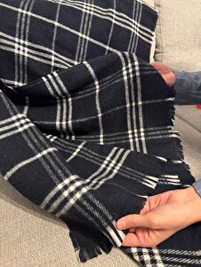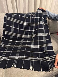 Kadın Yumuşak Dokulu Pofuduk Çizgili Ekose Kışlık Atkı Şal Lacivert Kadın Yumuşak Dokulu Pofuduk Çizgili Ekose Kışlık Atkı Şal Lacivert TYC4A57713C06ECA00