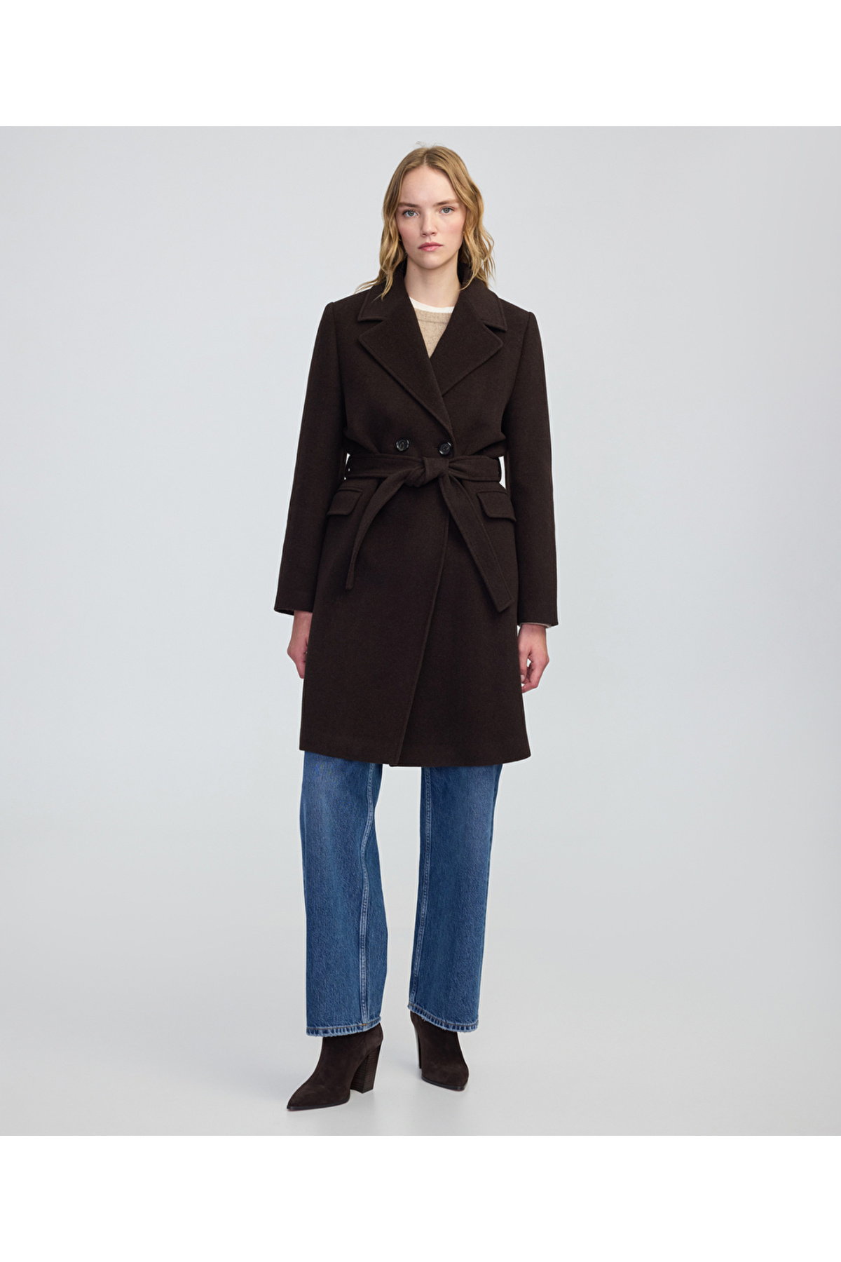 Kruvaze Yaka Belden Kuşaklı Kaban Kruvaze Yaka Belden Kuşaklı Kaban 25K.EKL.MAN.07035 42