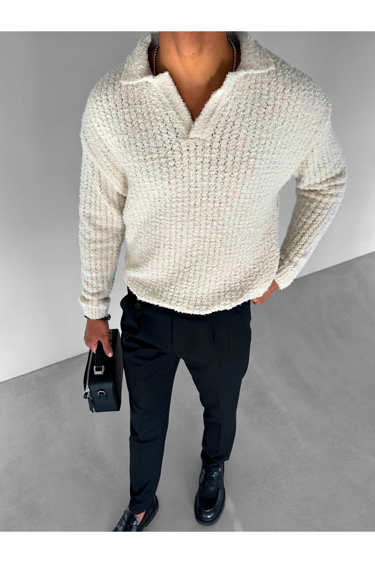Erkek Oversize Yumuşak Dokulu Örme Kazak Krem Erkek Oversize Yumuşak Dokulu Örme Kazak Krem KZK.0029 2XL