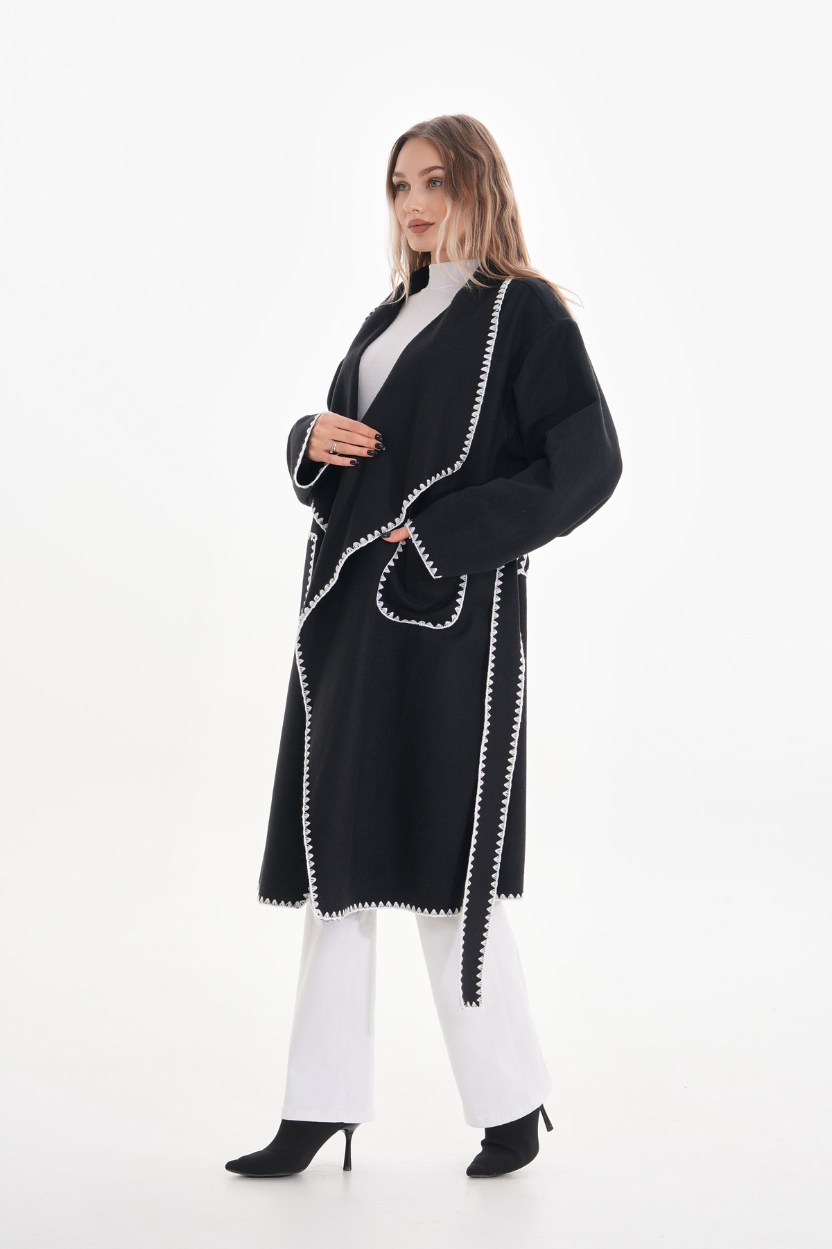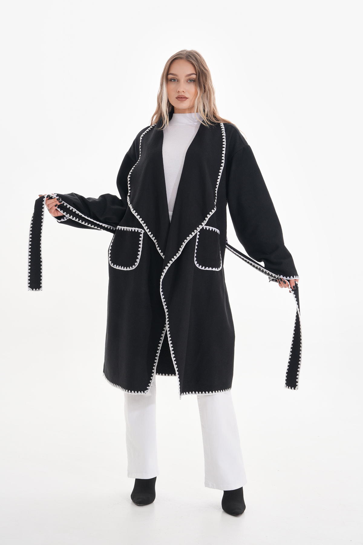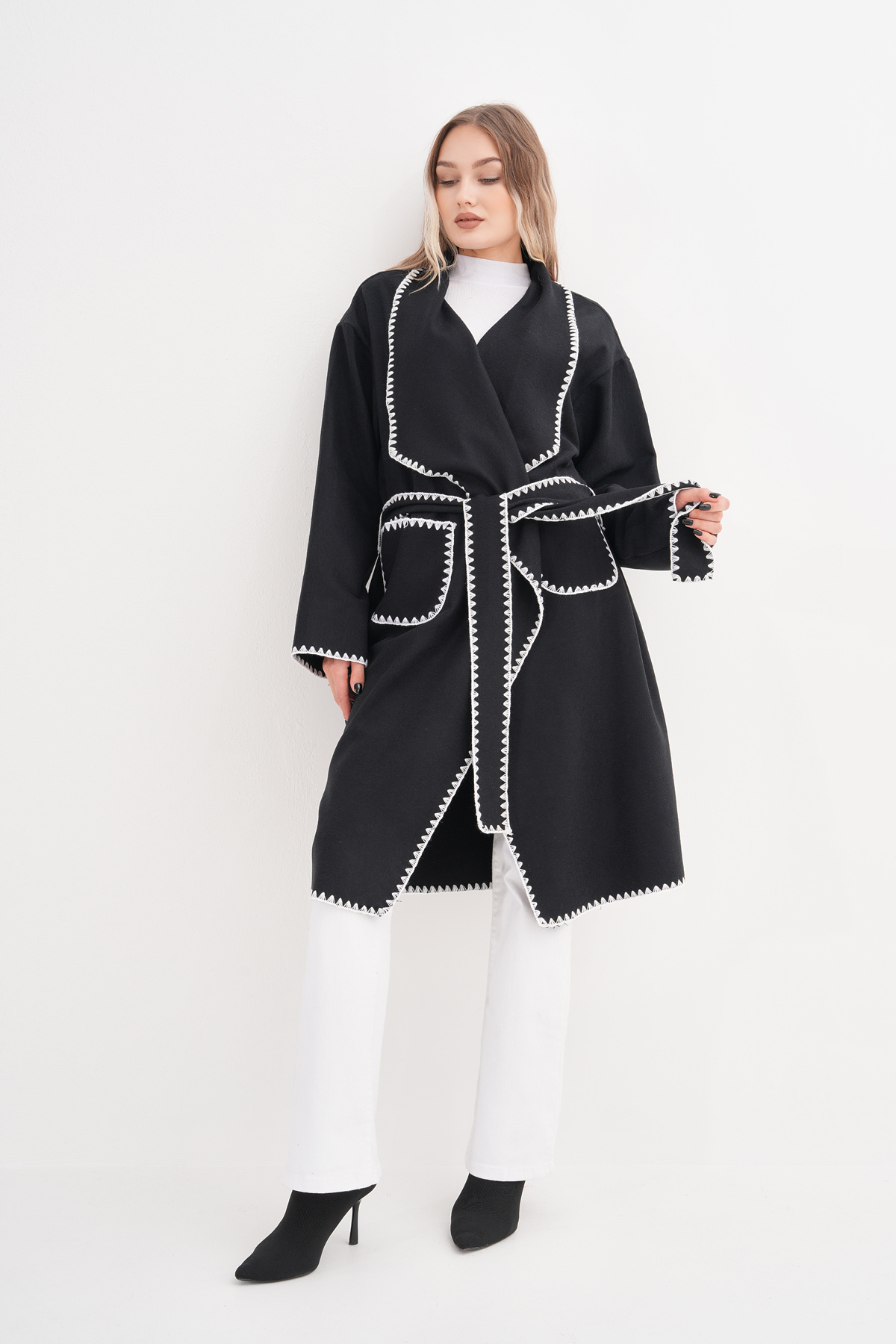 Siyah Kaşe Kaban Oversize Standart 36-46 Beden Dizaltı Cepli Kemerli Rahat Kalıp Siyah Kaşe Kaban Oversize Standart 36-46 Beden Dizaltı Cepli Kemerli Rahat Kalıp 520 Standart