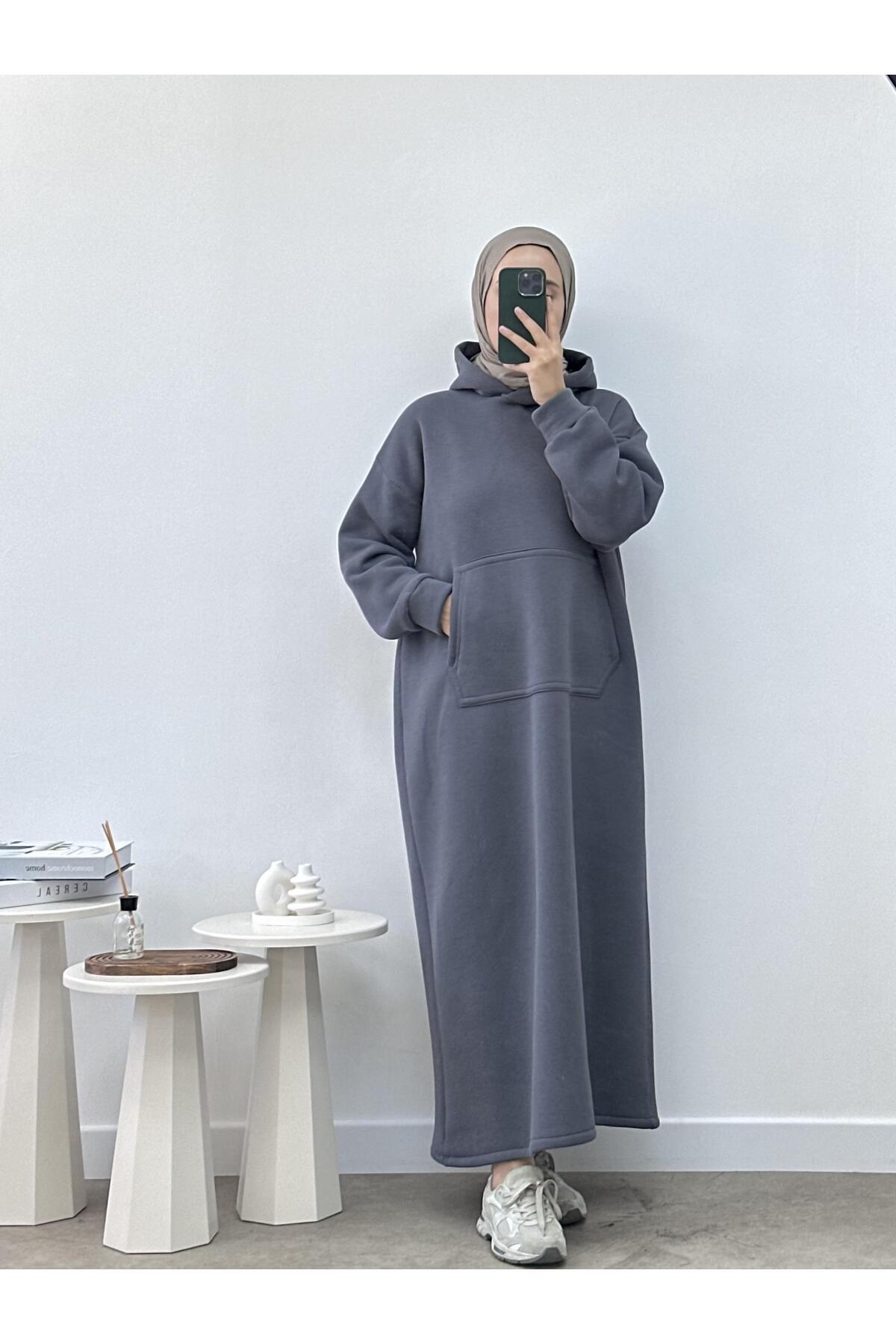 Beyaz Uzun Sweat Elbise Beyaz Uzun Sweat Elbise lbss67 XXS