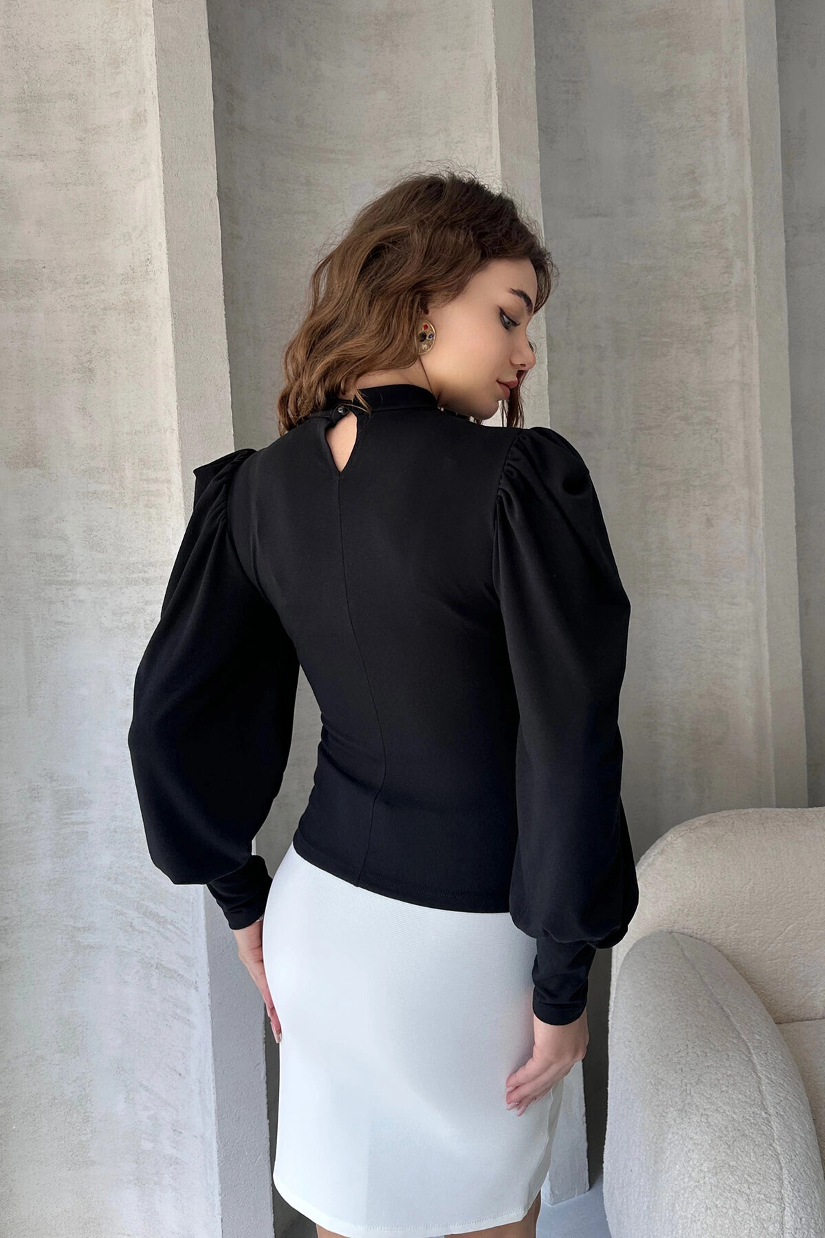 Kadın Siyah Öpücük Yaka Prenses Kol Crep Bluz Bcdf-242137 Kadın Siyah Öpücük Yaka Prenses Kol Crep Bluz Bcdf-242137 BCDF-242137 42