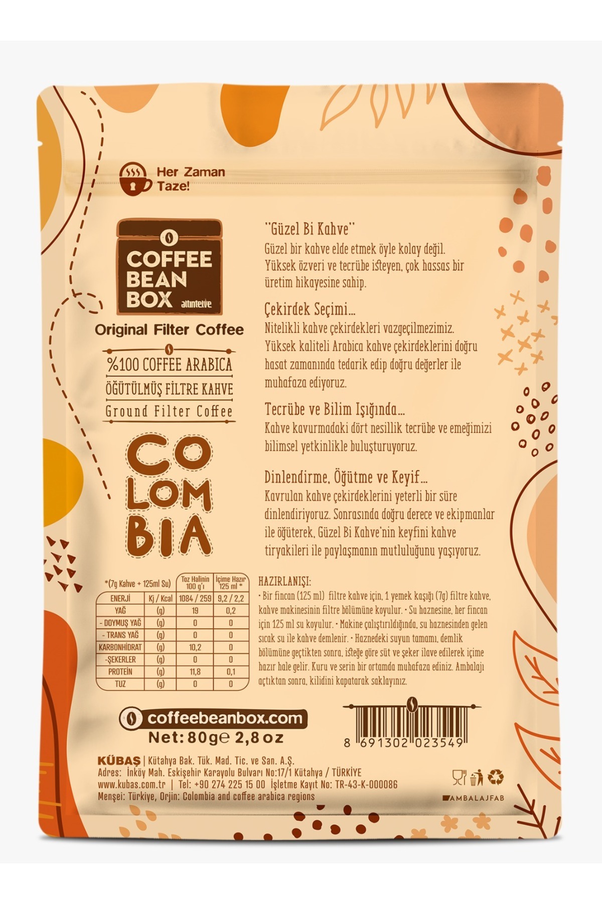 Colombia Filtre Kahve 10 x 80 gr Ekonomik Paket Colombia Filtre Kahve 10 x 80 gr Ekonomik Paket KMSCBB80FK10LUCOL Filtre Kahve