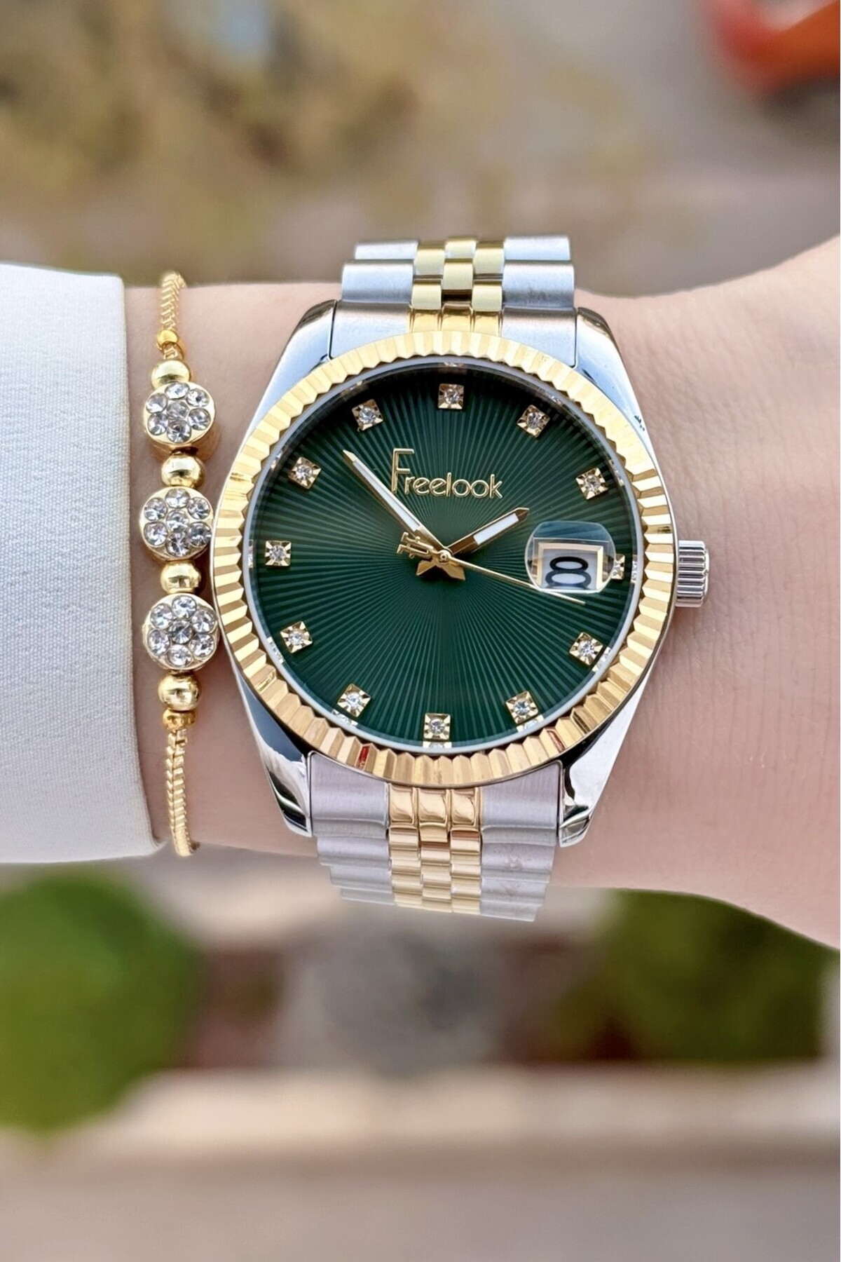 Kadranı Yeşil Kordonu Altın Metalik Renk 2 Yıl Garantili 5 ATM Kadın Kol Saati ve Bileklik Kadranı Yeşil Kordonu Altın Metalik Renk 2 Yıl Garantili 5 ATM Kadın Kol Saati ve Bileklik FLSADGIIO0514 تک سایز