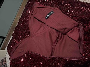 Trend Yırtmaçlı Kadife Pulpayet Elbise Bordo 583293 Trend Yırtmaçlı Kadife Pulpayet Elbise Bordo 583293 SLN2024 44