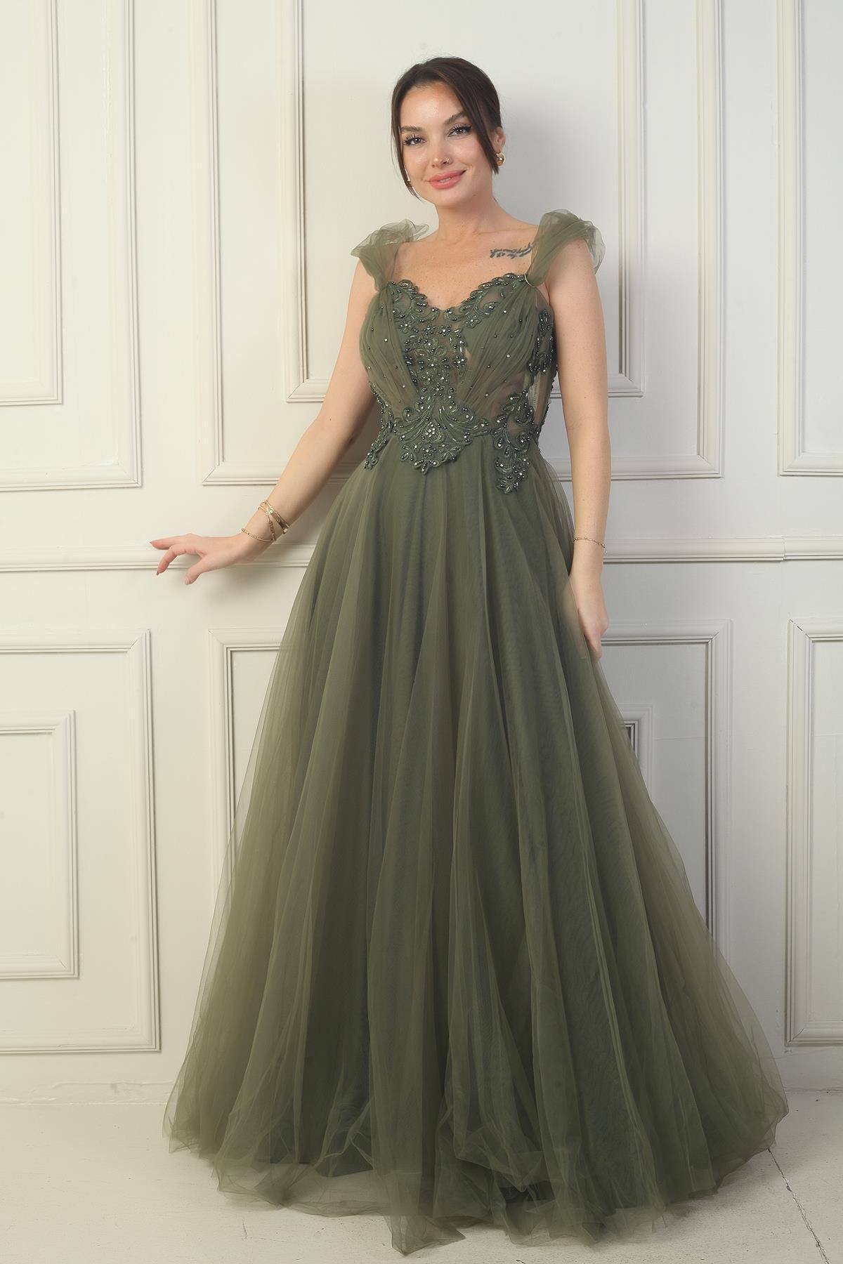 Kadın Ön Arka V Yaka Astarlı Düşük Kollu Üstü Aplike İşleme Prenses Abiye Elbise Kadın Ön Arka V Yaka Astarlı Düşük Kollu Üstü Aplike İşleme Prenses Abiye Elbise S-24Y1650016 XL