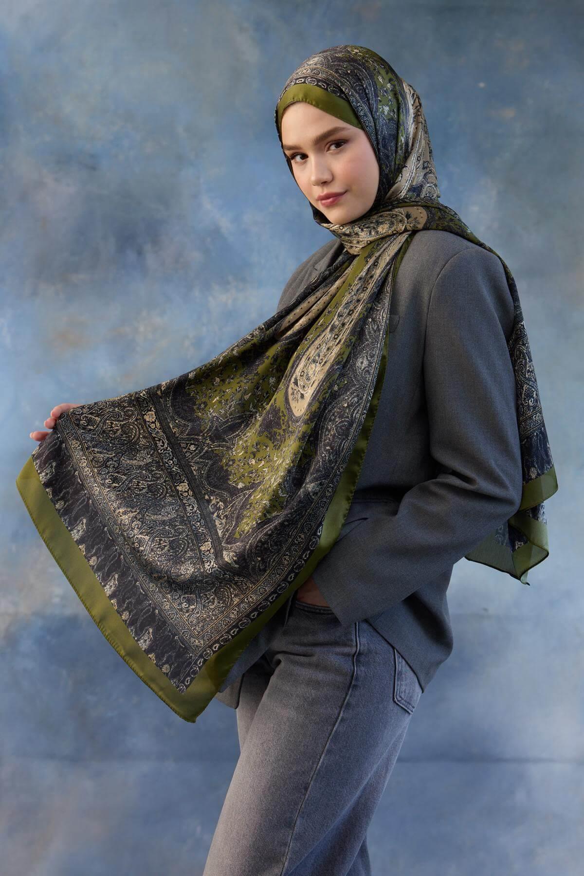 Haki Yeşil Hint Vual Şal - 5002-05 Haki Yeşil Hint Vual Şal - 5002-05 200 x 80