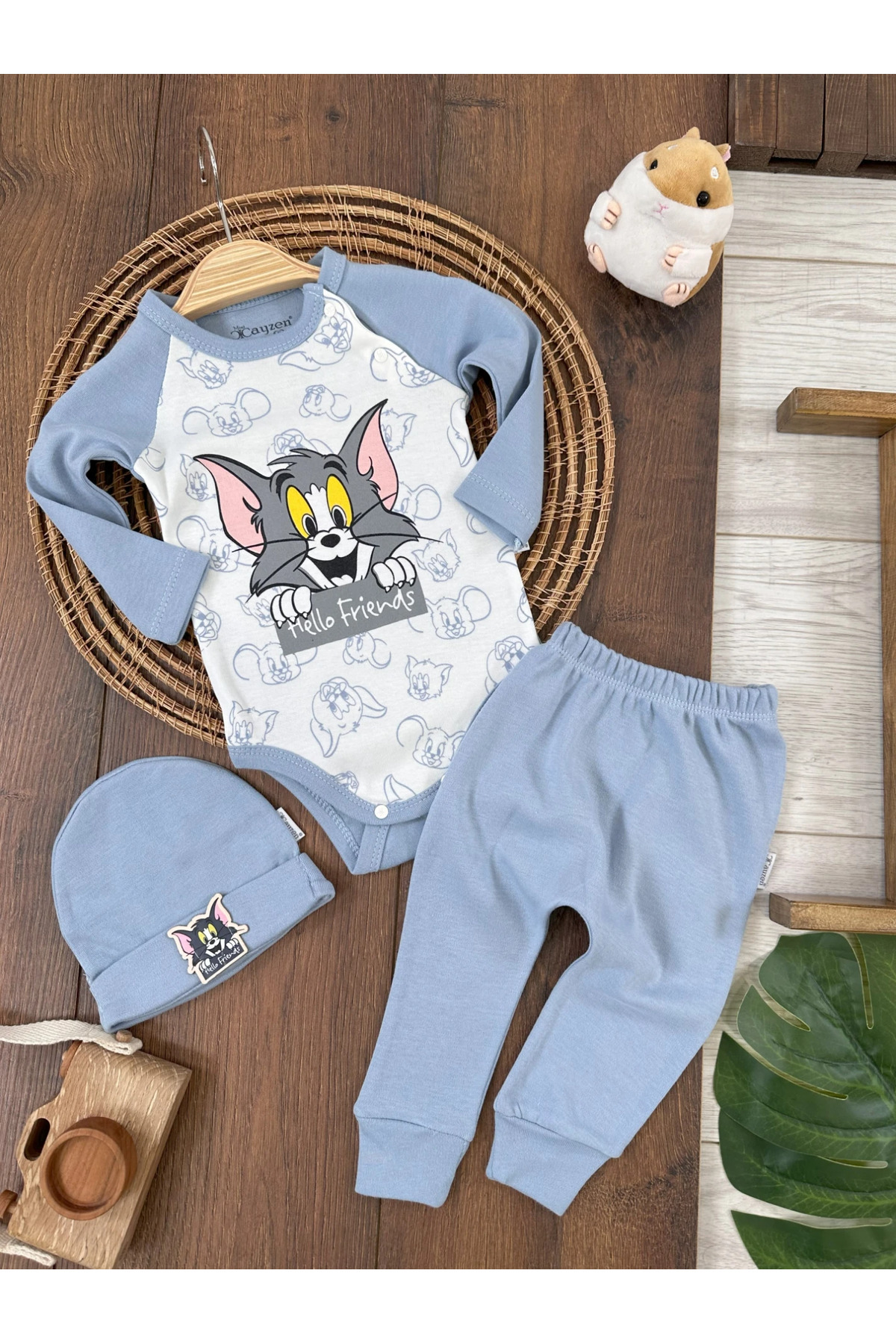 Ayıcık Nakışlı Çoraplı Alttan Çıtçıtlı Erkek Bebek Takım Ayıcık Nakışlı Çoraplı Alttan Çıtçıtlı Erkek Bebek Takım 7117 3-6 AY