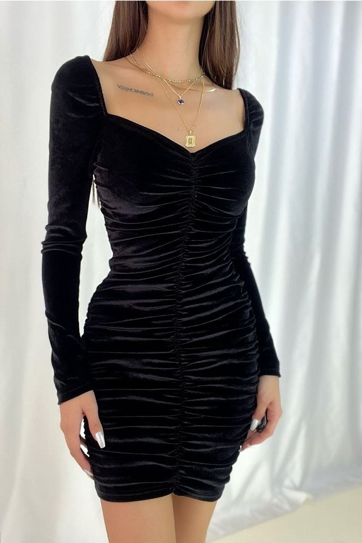 KURDELE DETAYLI KADİFE ELBİSE KURDELE DETAYLI KADİFE ELBİSE 101210000073 40