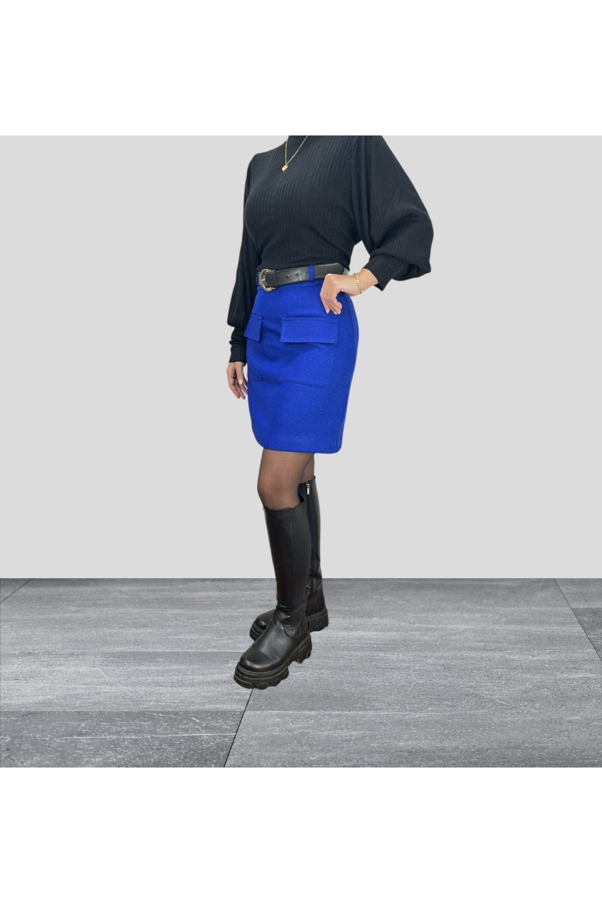 Saks Mavi Önden Kapak Cepli Astarlı Mini Boy Etek Saks Mavi Önden Kapak Cepli Astarlı Mini Boy Etek ABETK122 42