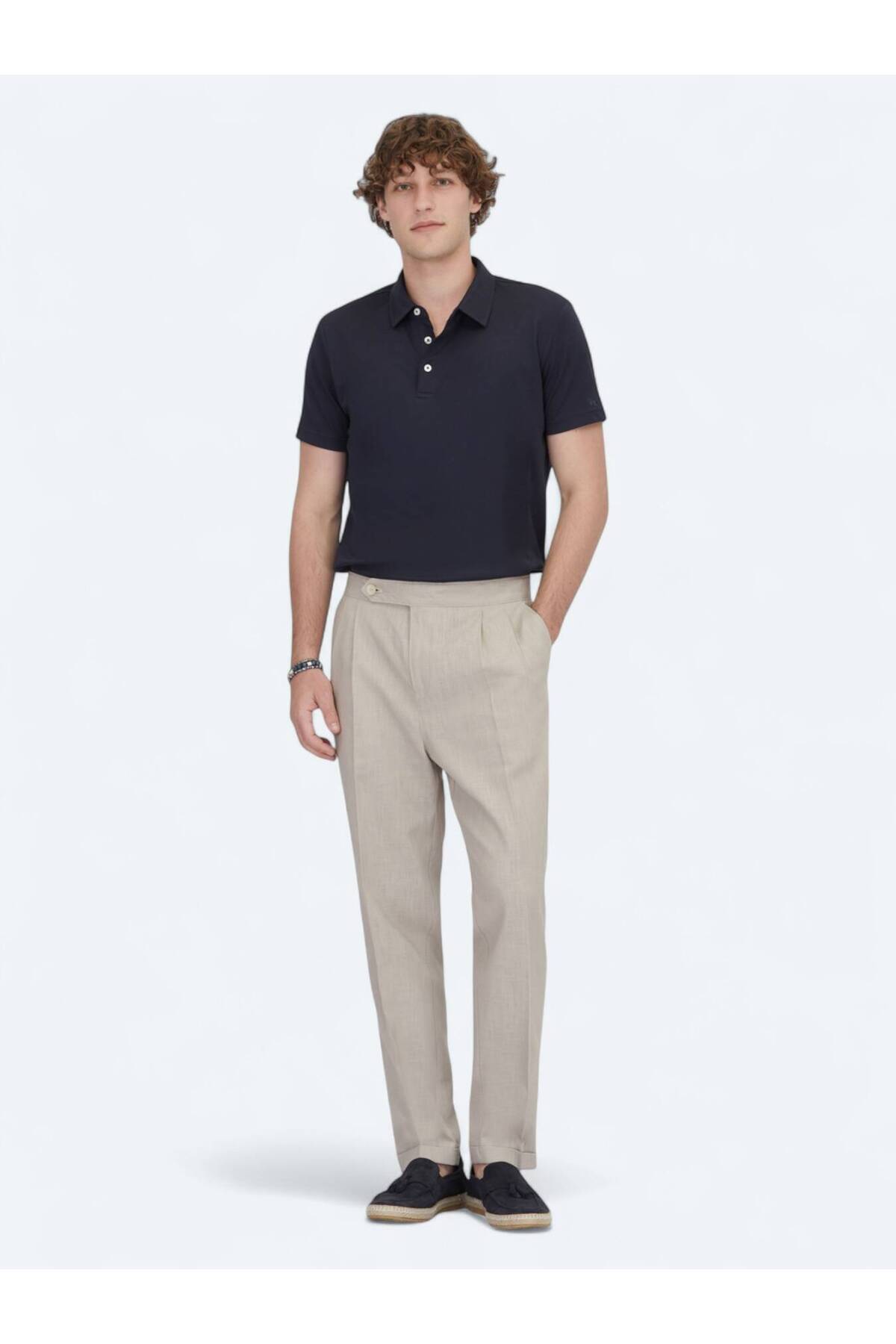 Lacivert Dokuma Loose Fit Casual Pantolon Lacivert Dokuma Loose Fit Casual Pantolon 49796 40