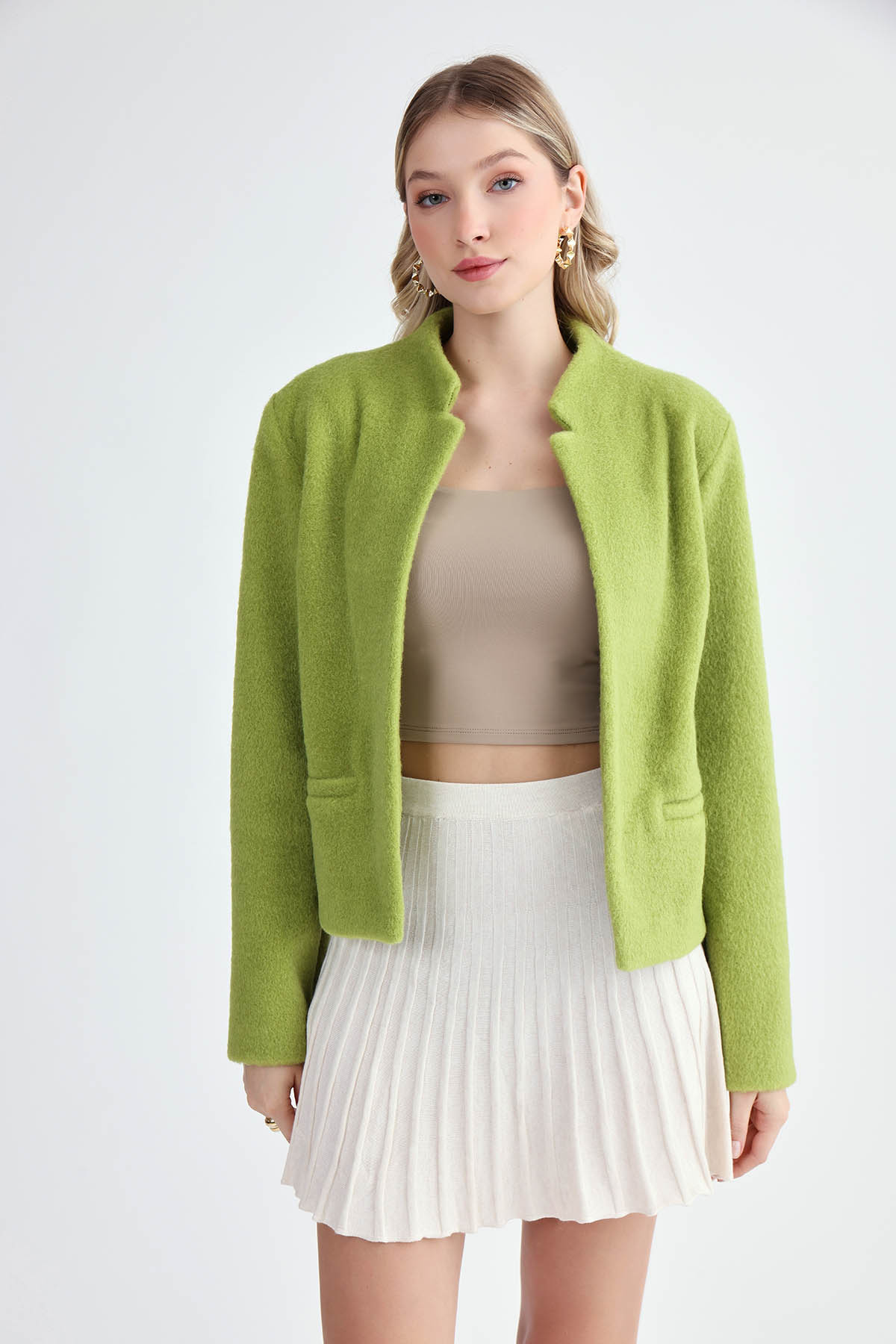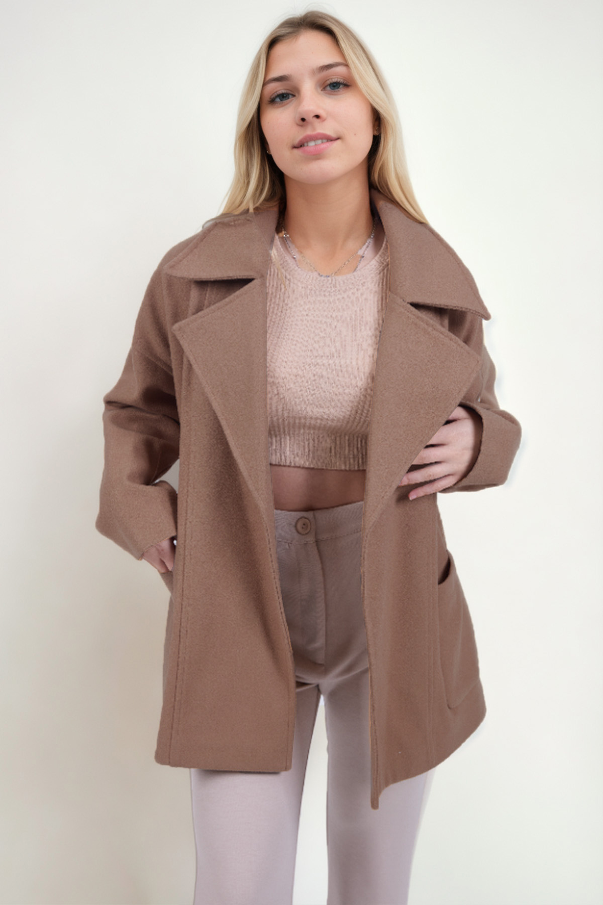 Asimetrik Kesim Cepli Keçe Ceket Asimetrik Kesim Cepli Keçe Ceket 24-843 M