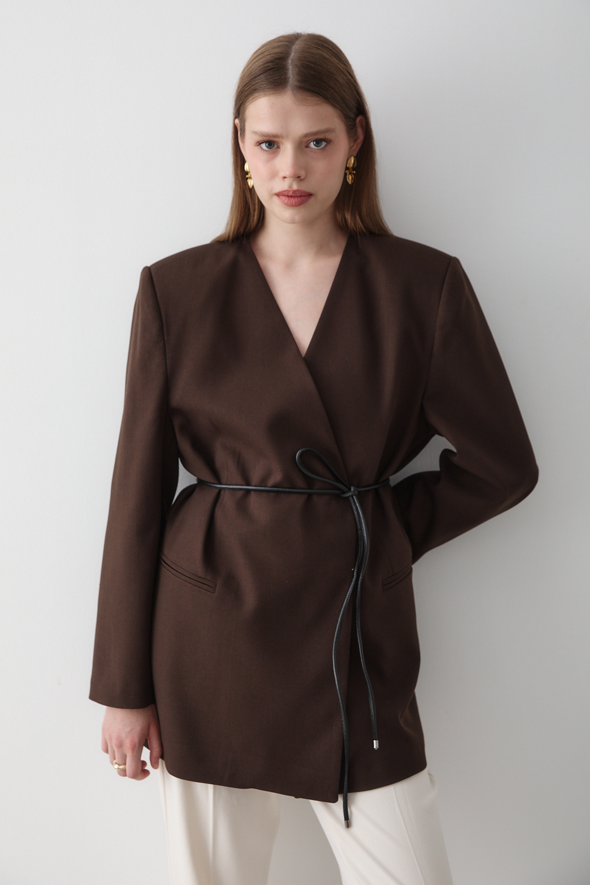 Camel Kadın Kemerli Dokulu Blazer Ceket Camel Kadın Kemerli Dokulu Blazer Ceket BA24Y408 L