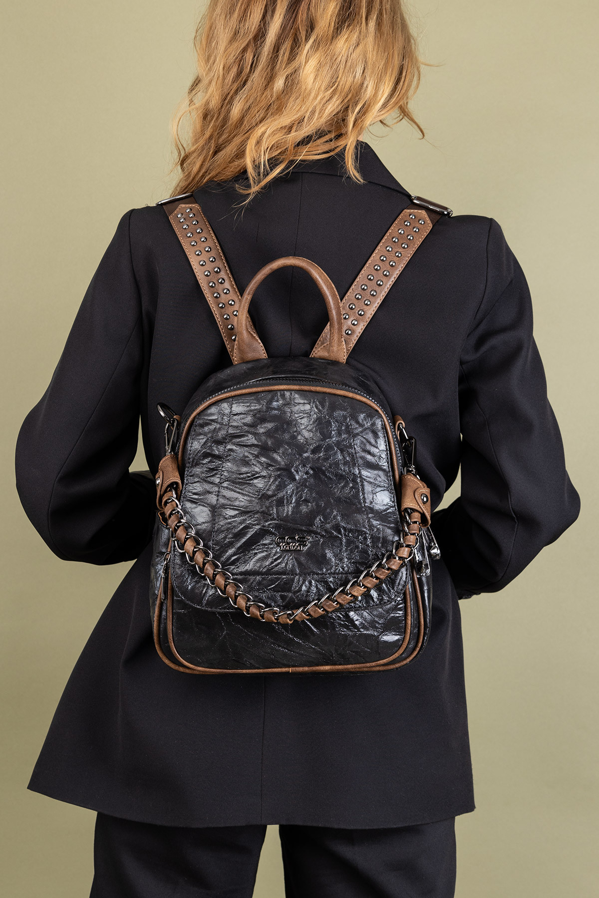 Nekesa Kadın Siyah Zincir Askılı Deri Görünümlü Sırt Ve Omuz Çantası Günlük Vintage Tasarım Nekesa Kadın Siyah Zincir Askılı Deri Görünümlü Sırt Ve Omuz Çantası Günlük Vintage Tasarım 17634 تک سایز
