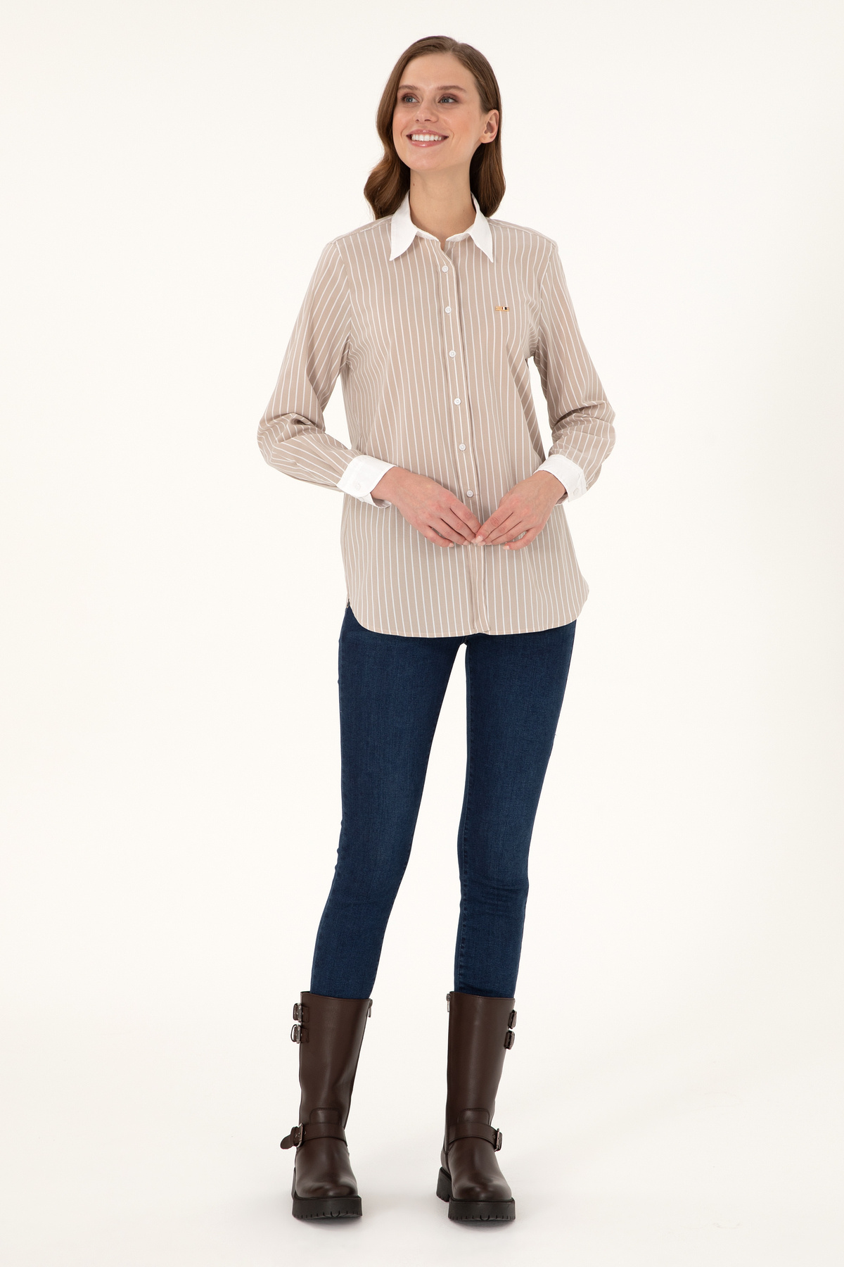 Kadın Kum Çizgili Uzun Kollu Tunik Gömlek 50297107-VR085 Kadın Kum Çizgili Uzun Kollu Tunik Gömlek 50297107-VR085 1114399 44