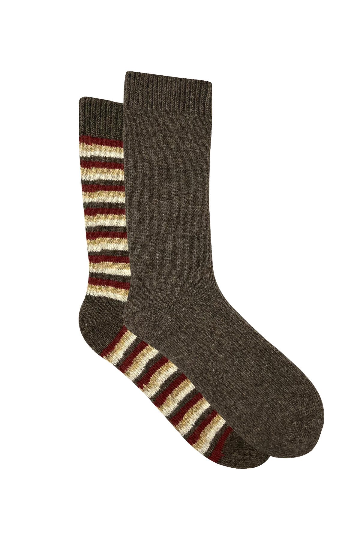 2'li Çocuk Kahve-Çizgili Kışlık Kalın Organik Yün Soket Çorap 2'li Çocuk Kahve-Çizgili Kışlık Kalın Organik Yün Soket Çorap 0570-4-1 31-34