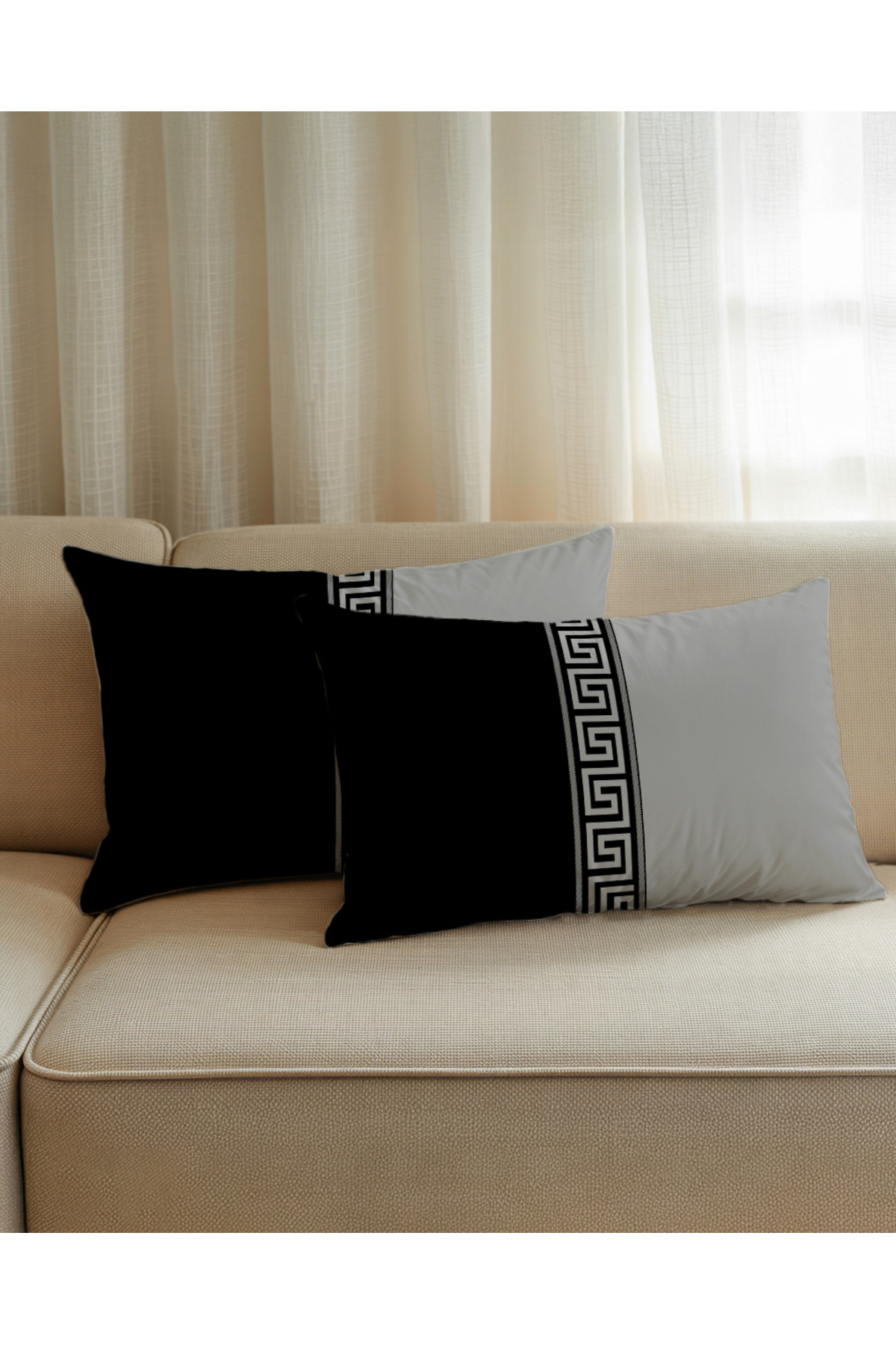 Modern Labirent Desenli Siyah Gri Hediyelik Dekoratif 4lü Kırlent Kılıfı Takım Modern Labirent Desenli Siyah Gri Hediyelik Dekoratif 4lü Kırlent Kılıfı Takım MDRNSET 50 x 50