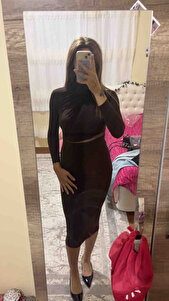 Esnek Sandy Kumaş Tül Dekolte Detaylı Dik Yaka Uzun Kollu Midi Boy Kalem Elbise Esnek Sandy Kumaş Tül Dekolte Detaylı Dik Yaka Uzun Kollu Midi Boy Kalem Elbise MST10957 40