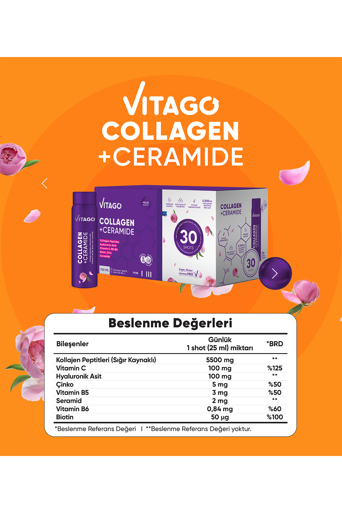 Kolajen Tip 1-3, Seramid, Vitamin ve Mineral İçeren Sıvı Takviye Edici Gıda 30x25 ml Shots Kolajen Tip 1-3, Seramid, Vitamin ve Mineral İçeren Sıvı Takviye Edici Gıda 30x25 ml Shots 0020 تک سایز
