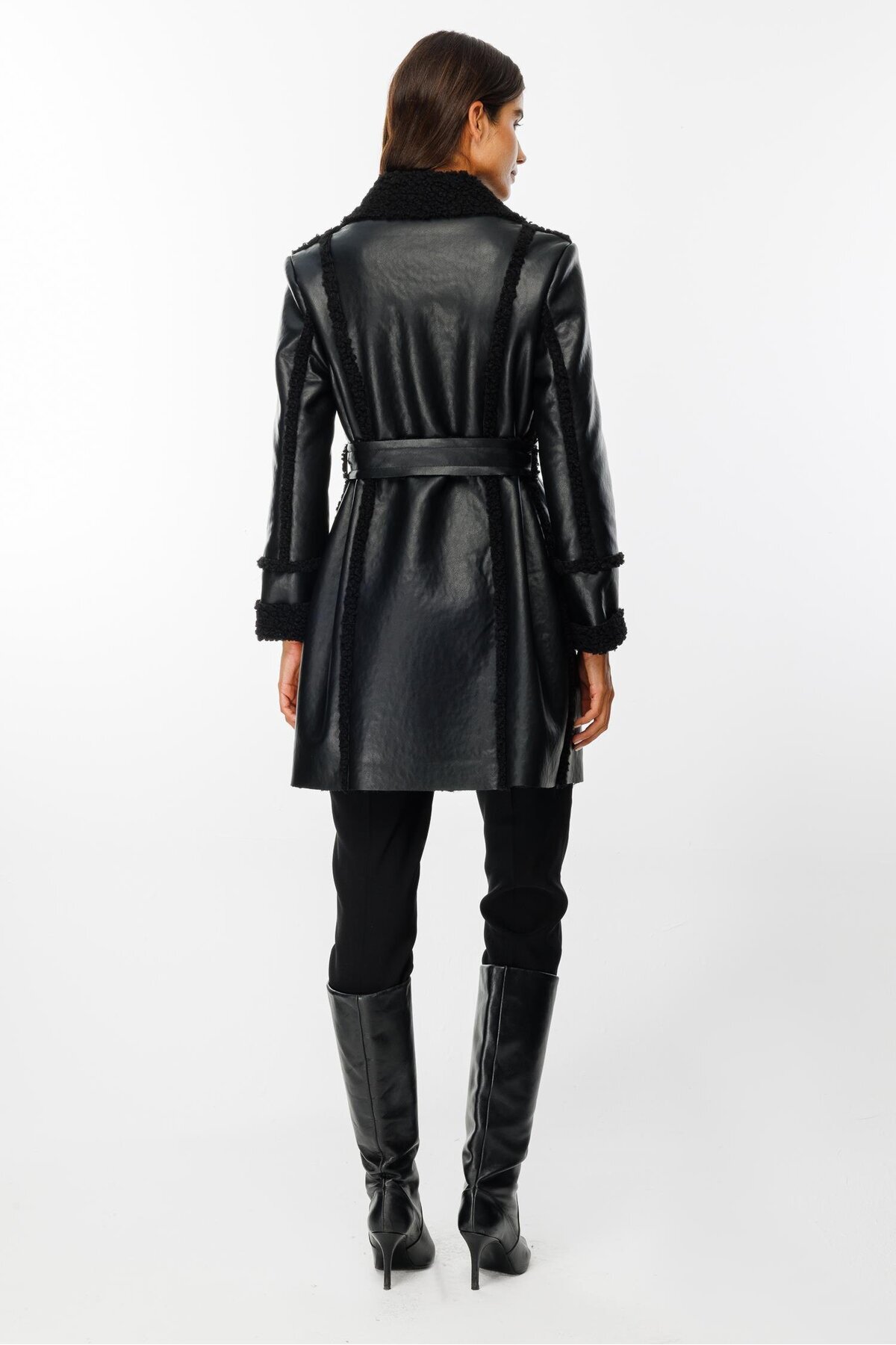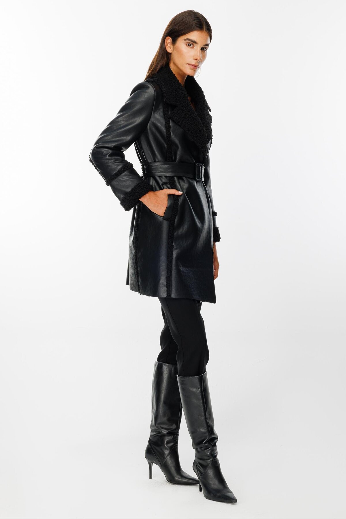Modailgi İçi Peluşlu Kemerli Deri Kaban Siyah Modailgi İçi Peluşlu Kemerli Deri Kaban Siyah ILG250KBN02044 44