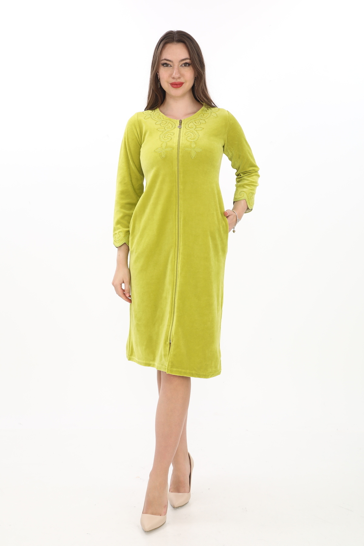 Taş Nakış Detaylı Kadife Kışlık Elbise Taş Nakış Detaylı Kadife Kışlık Elbise 25-459 XL