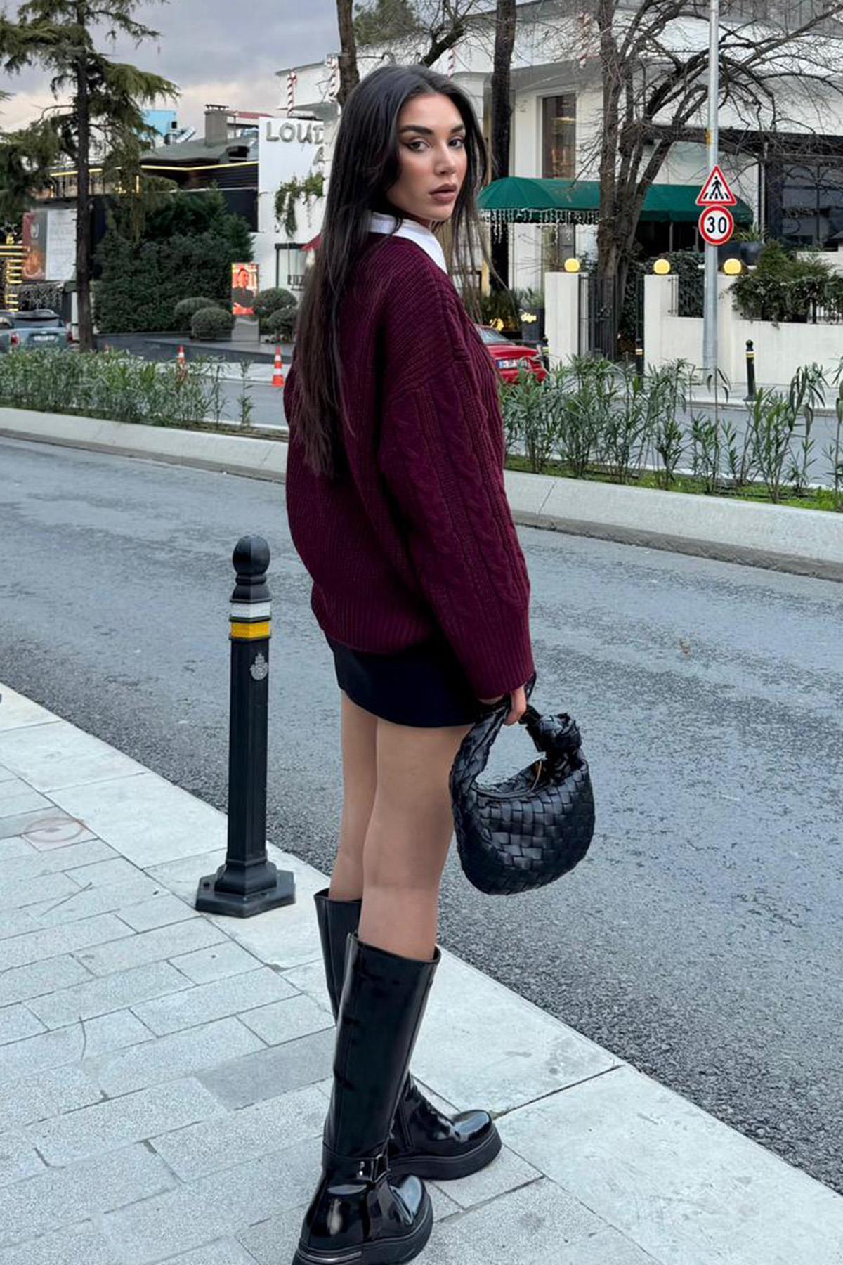 Bordo Bisiklet Yaka Örme Triko Kazak MG2009 Bordo Bisiklet Yaka Örme Triko Kazak MG2009 L