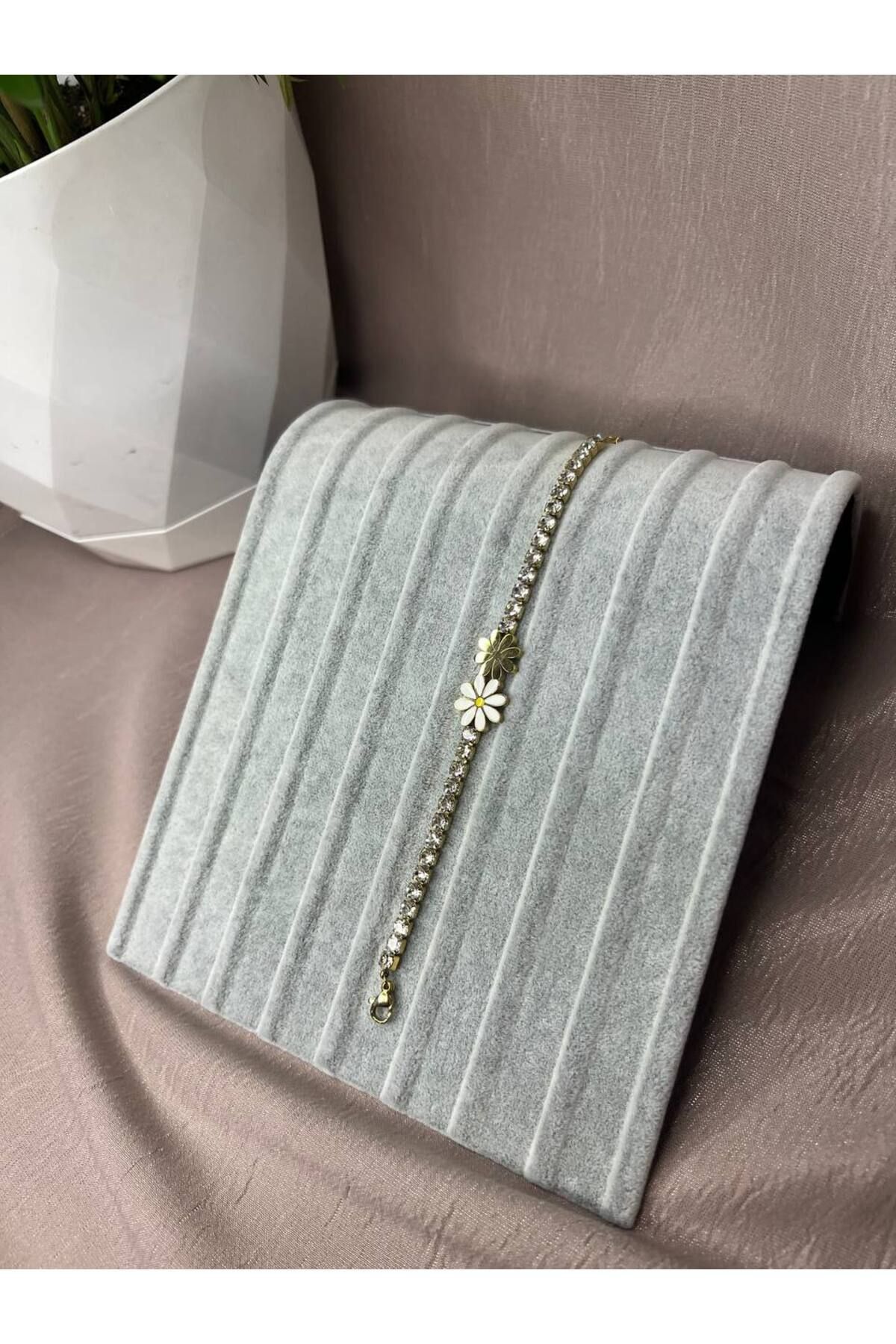 Gold Papatya Taşlı Çelik Kelepçe Bileklik Gold Papatya Taşlı Çelik Kelepçe Bileklik 34567899876787 تک سایز