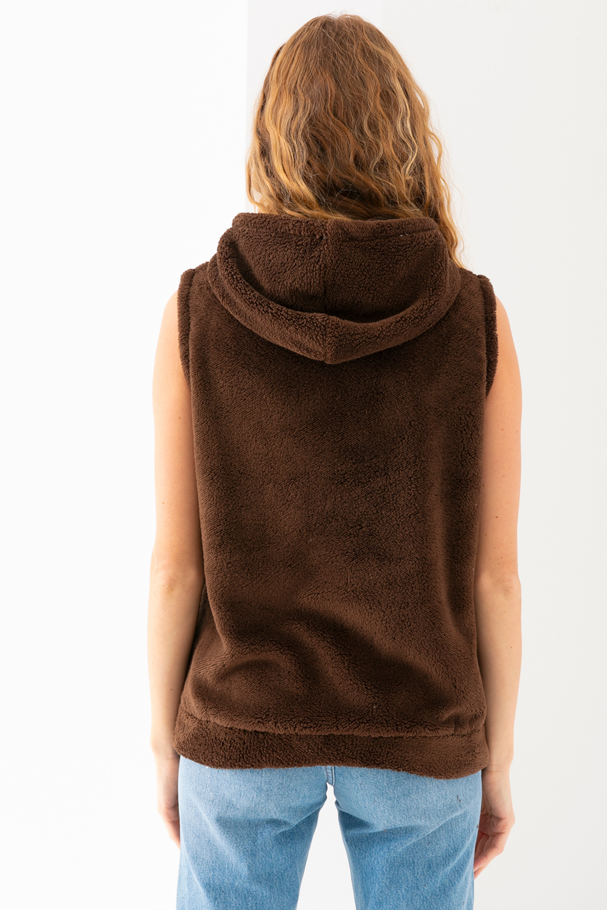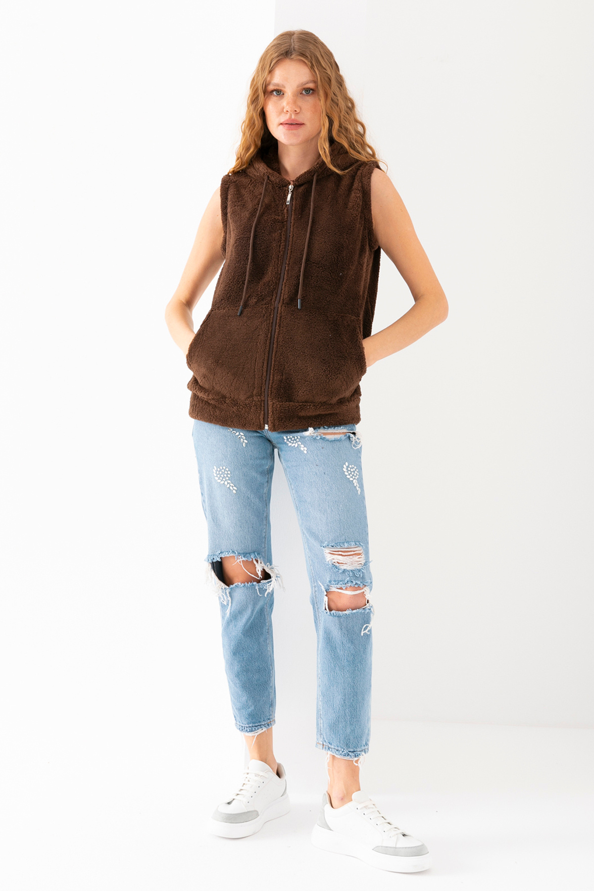 Kadın Kahverengi Kapşonlu Kolsuz Peluş Yelek Kadın Kahverengi Kapşonlu Kolsuz Peluş Yelek et6028 4XL